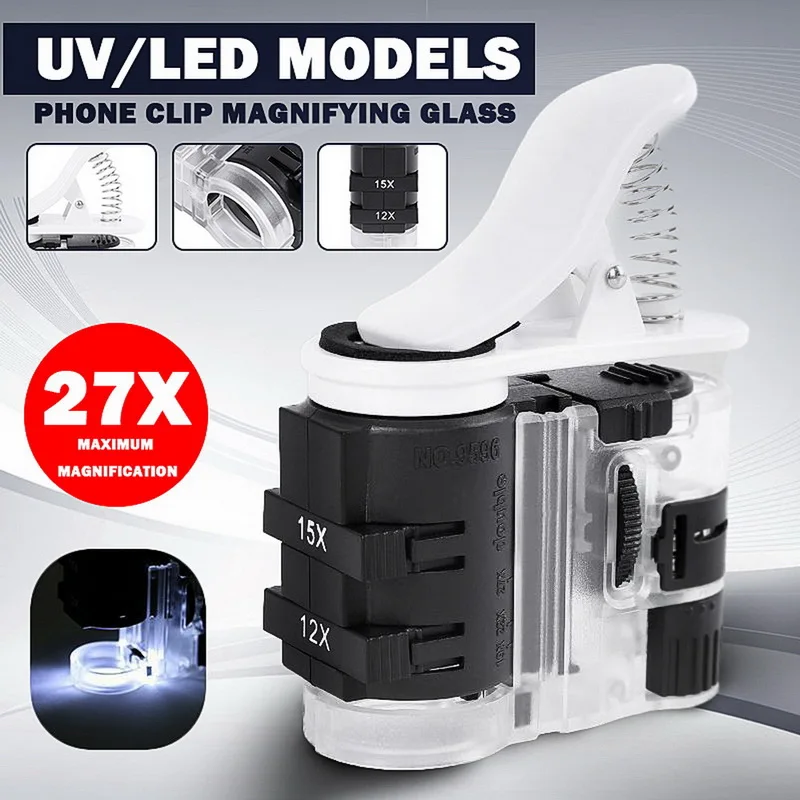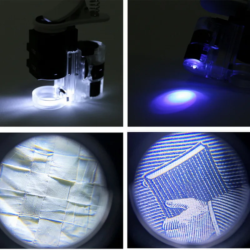 <Светодиодный светильник s и УФ-светильник: 1 светодиодный светильник s увеличительного стекла обеспечивает достаточно светильник в любом тусклом состоянии, И УФ-светильник помогает исследовать и идентифицировать подлинность денег и ювелирных изделий.