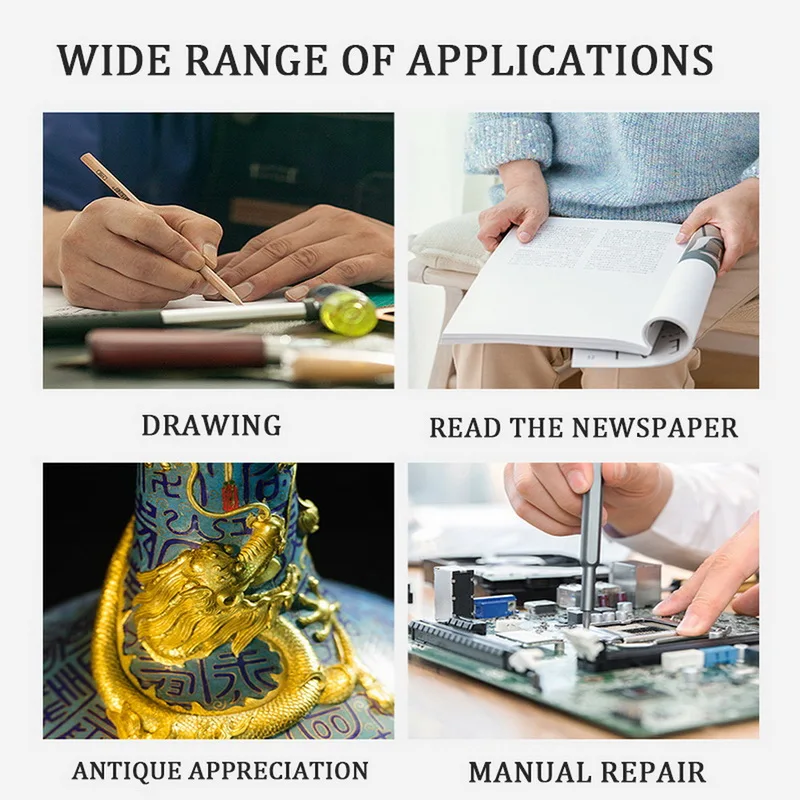 <Применение: идеально подходит для тщательного наблюдения за различными предметами, такими как драгоценные камни, ювелирные изделия, камни, марки, монеты, часы, хобби и многое другое.