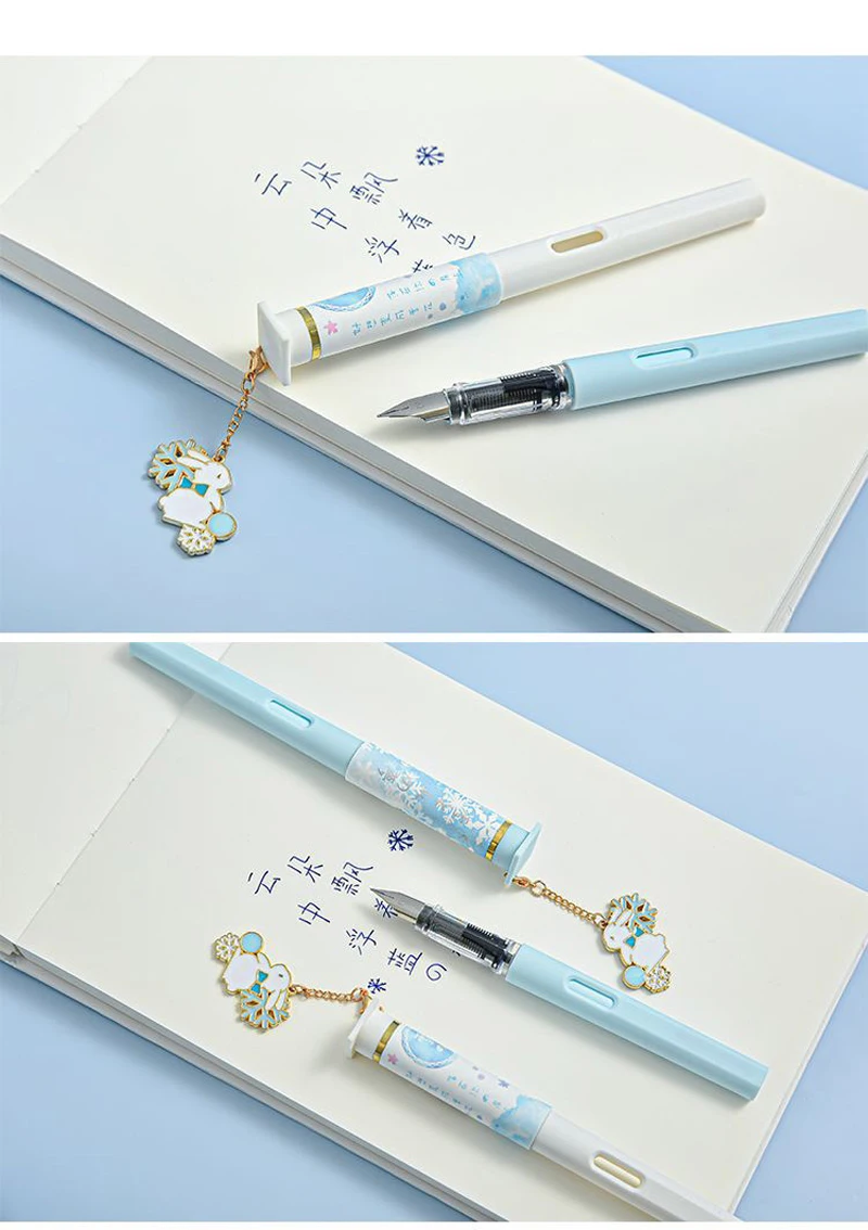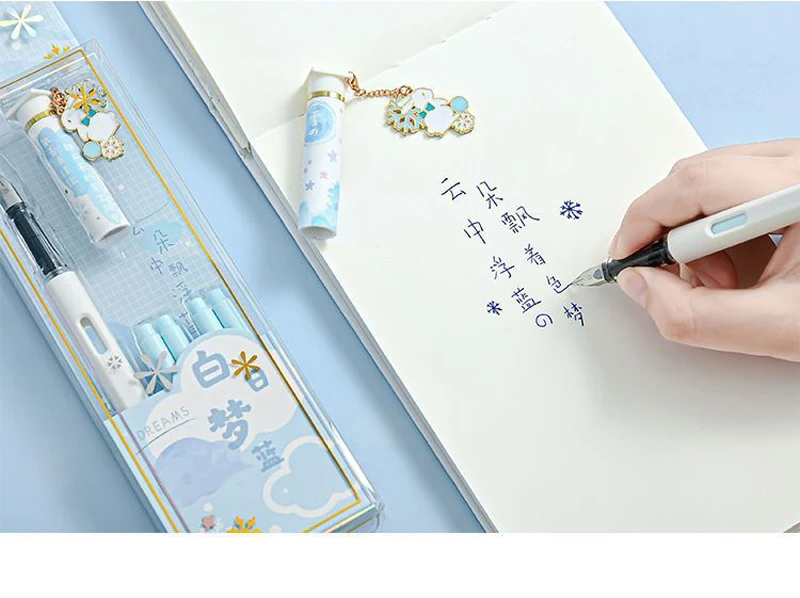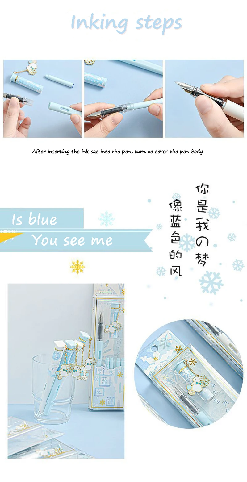 1 set of cute fountain pens cute high quality ink pen with ink bag gift writing school office supplies