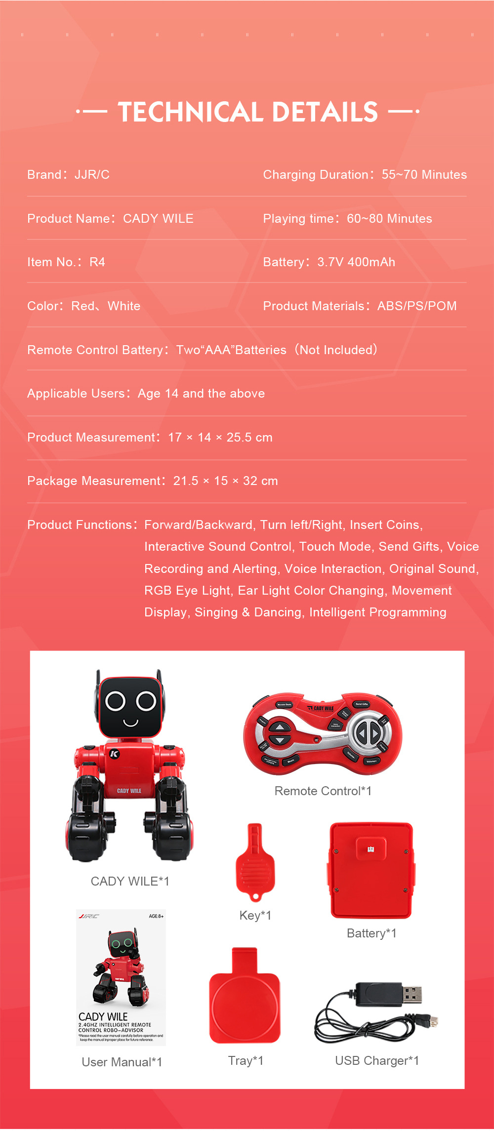 Функция: вперед/назад, поворот влево/вправо, интерактивное управление звуком, Сенсорный режим, запись голоса и оповещение, отображение движения, вставка монет, пение и танцы, интеллектуальное Программирование