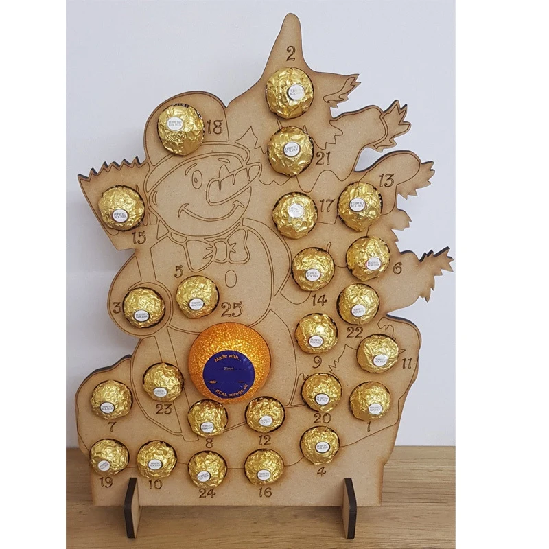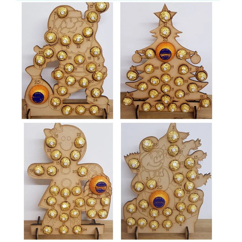 AF88-деревянный Рождественский календарь с календарем выдолбленный обратный отсчет Подставка под шоколад домашний декор подставка