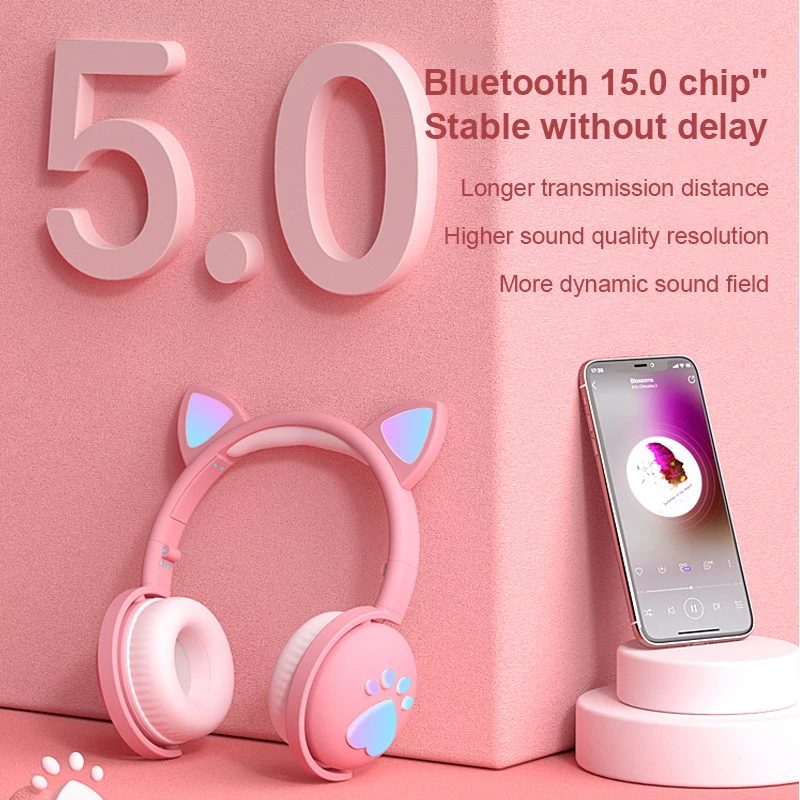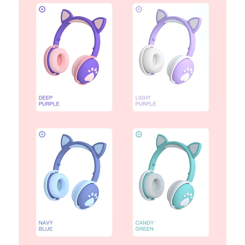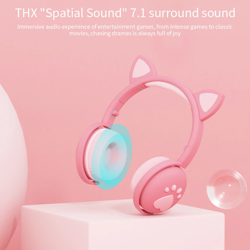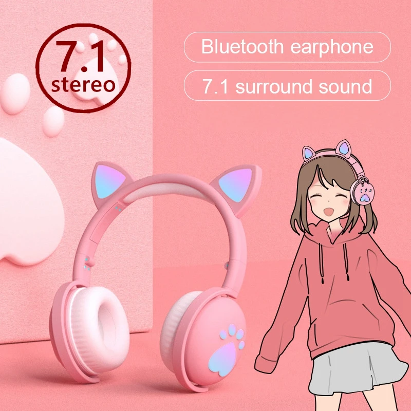7,1 стерео Бас вспышка светодиодный Кот Bluetooth 5,0 Беспроводные наушники с микрофоном гарнитура девушка музыка шлем регулировка громкости для телефона ноутбука планшета