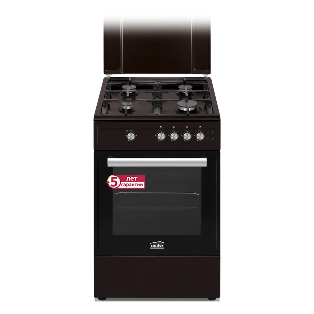 Описание Газовая плита Simfer F56GD42017, чугунные решетки, газовая духовка, ширина 50 см