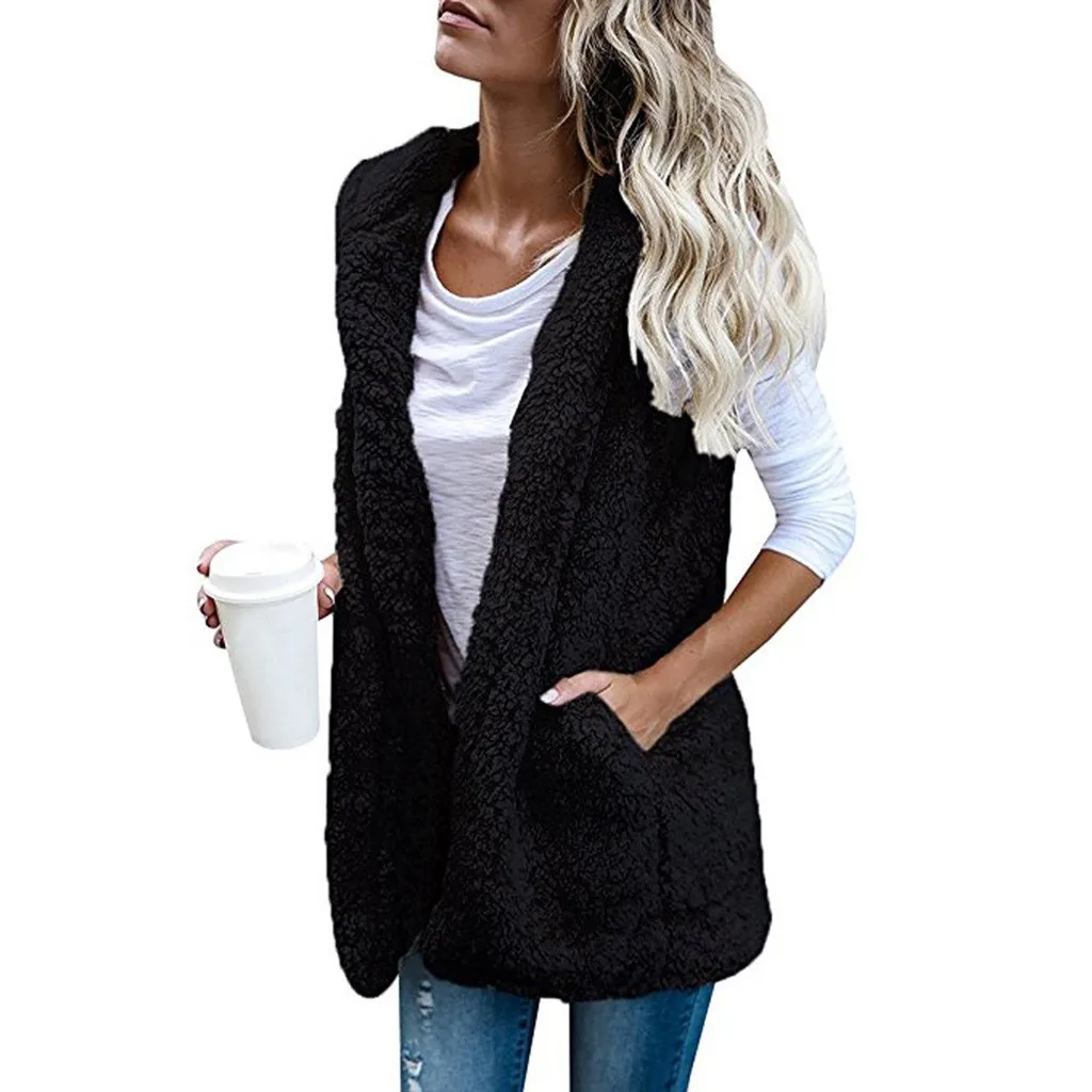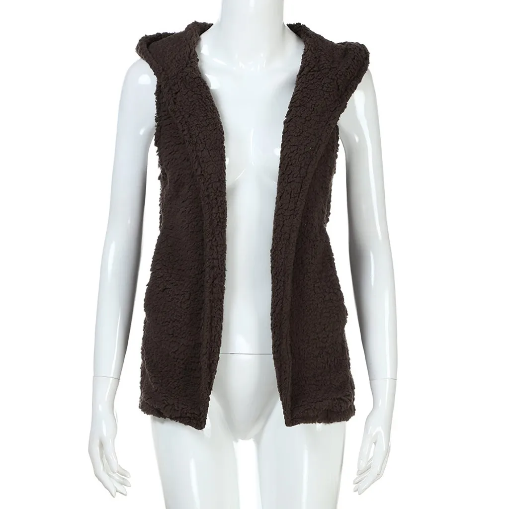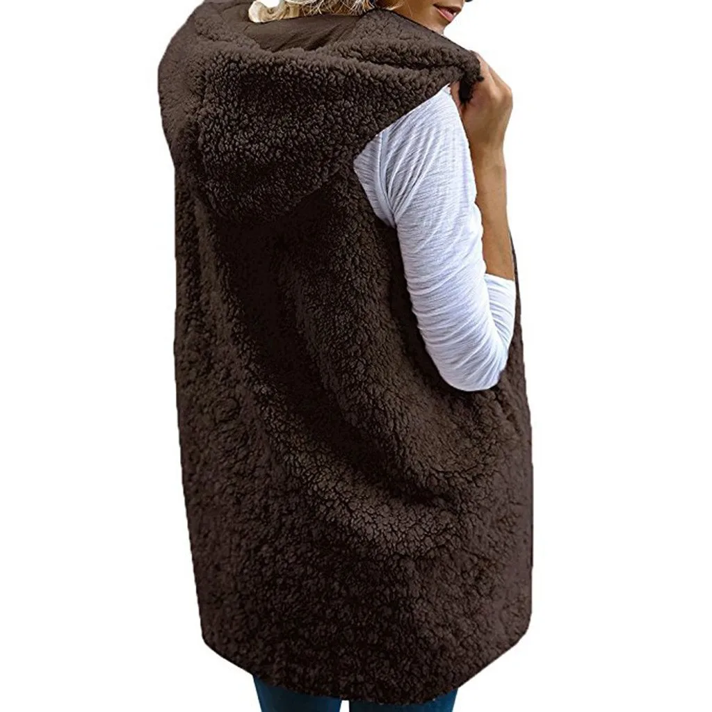 Женский жилет, зимняя теплая верхняя одежда с капюшоном, повседневное пальто, куртка с шерпой