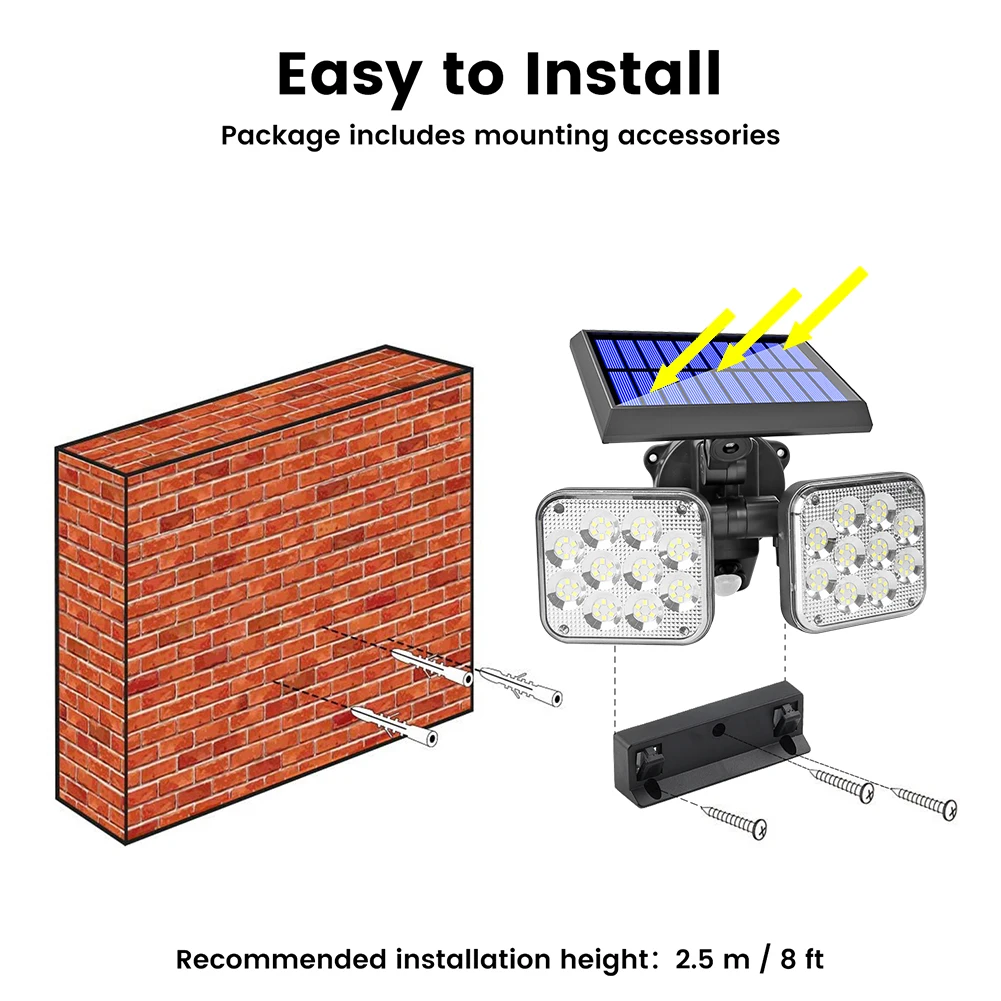 3. IP65 защита от атмосферных воздействий: водонепроницаемый светильник на солнечной батарее: IP65, может быть закреплен на стене с помощью винтов, подходит для любых погодных условий, подходит для террас, газонов, террасы или колоды для просмотра.