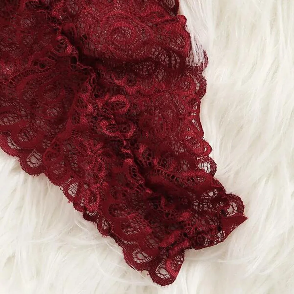 Сексуальное изысканное кружевное красное нижнее белье бюстгальтер + стринги Набор Babydoll одежда для сна с вырезами