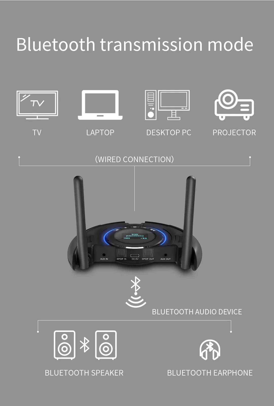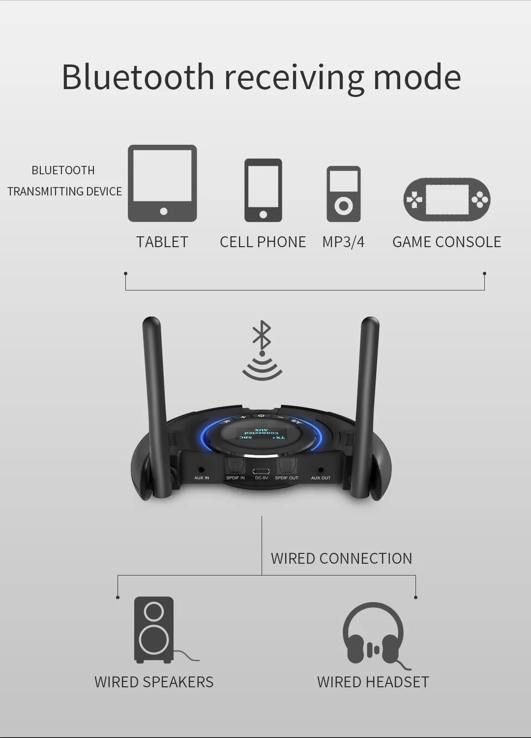 Изделие имеет красивый внешний вид. Принять CSR8675 высококлассный дизайн чипа. Новейшая технология шумоподавления и подавления эха CSR Поддержка TX dual stream, RX multi-точка подключения SPDIF, I2S аудио вход/выход интерфейс, бесплатно switc. Поддержка SBC, MP3, AAC, apt-X HD, apt-X LL, apt-X LOW LATENCY,apt-X audio format. Поддержка TWS (разделение левого и правого каналов) Продукт прост в подключении, без драйвера или загрузки приложения.