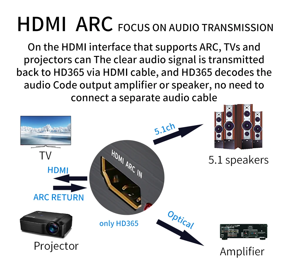 Примечание: Есть две версии, HD360 не поддерживает функцию ARC HD365 поддерживает функцию ARC без выхода HDMI
