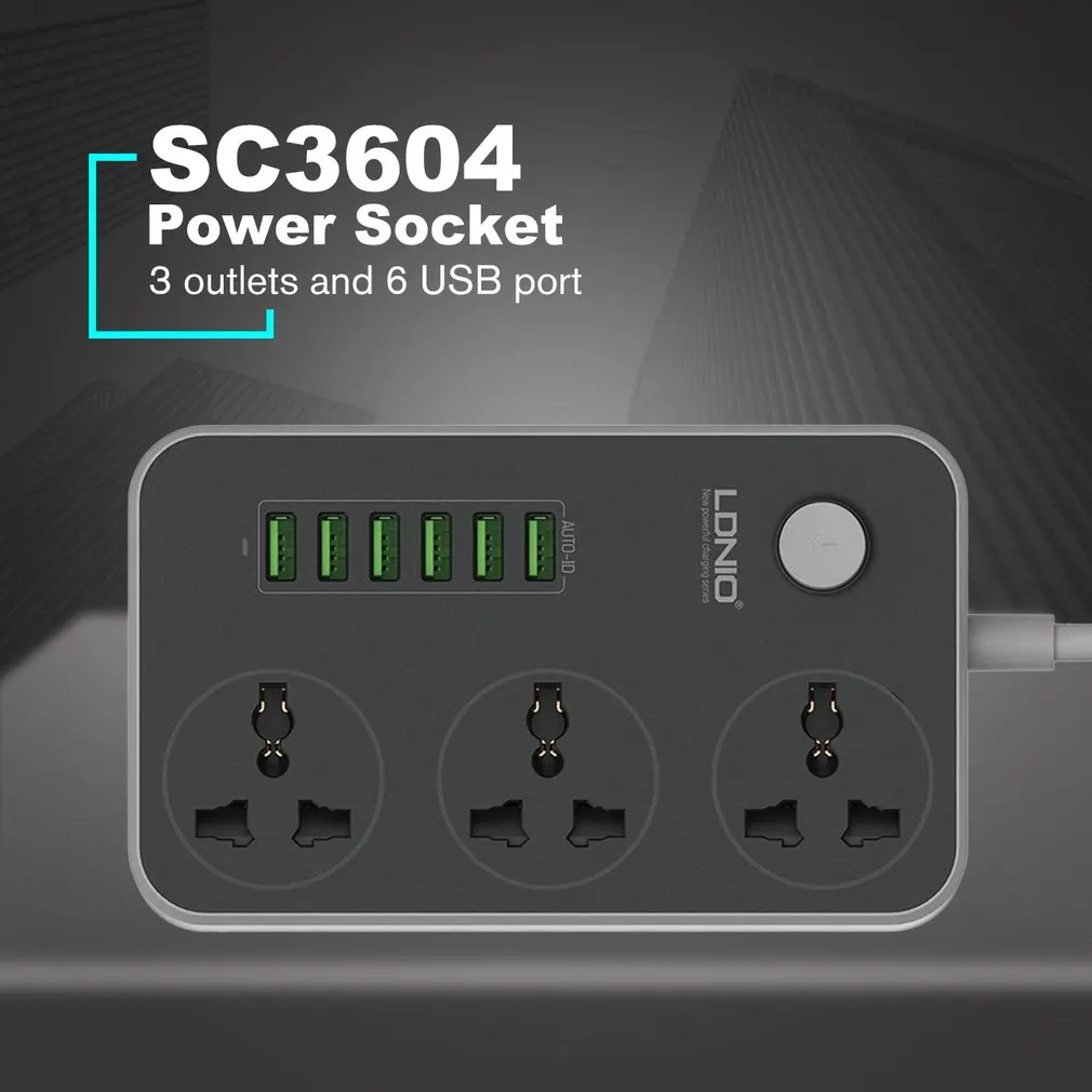 2. 3 выхода и 6 портов USB: обеспечивает достаточное количество розеток переменного и постоянного тока для зарядки.