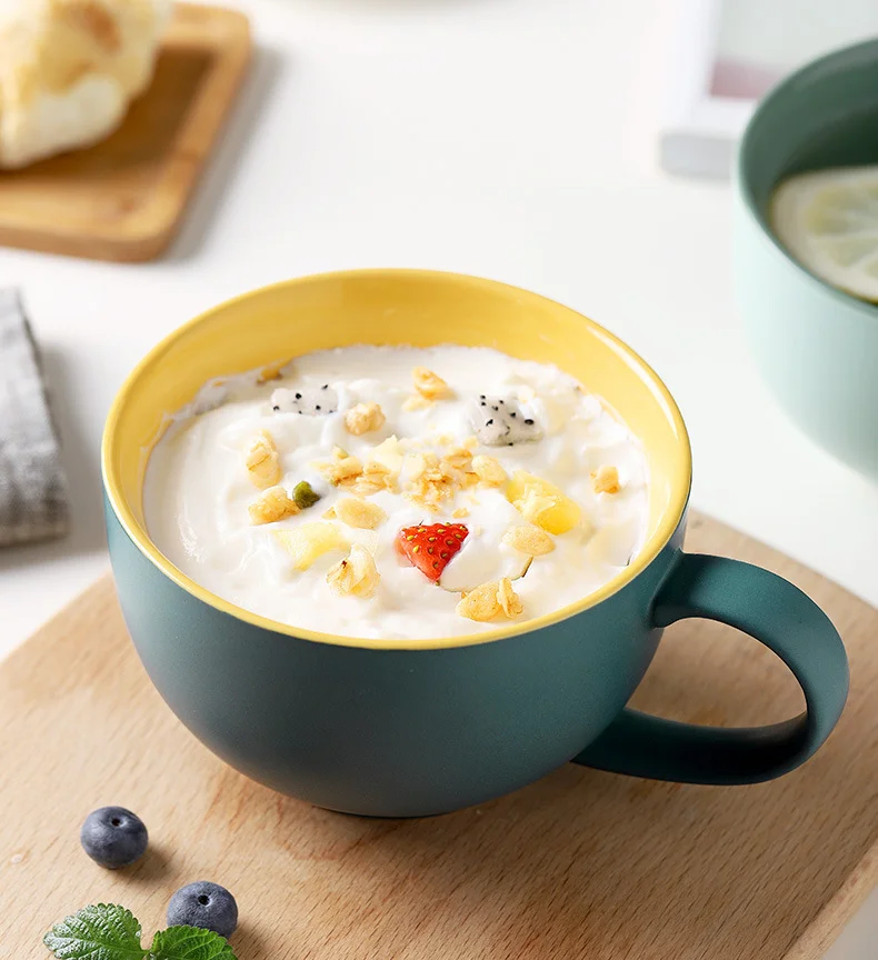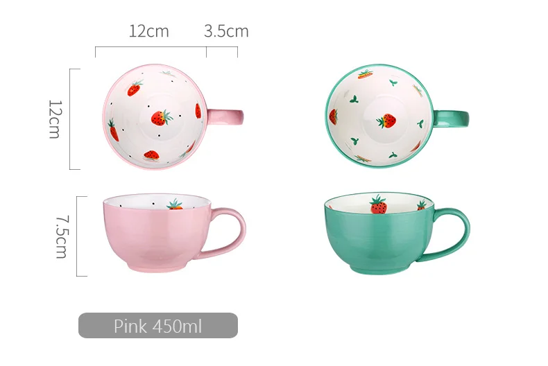 Керамические кружки для завтрака, овсяных хлопьев, йогурта, милая Клубника, вместительная кружка для десерта, молочного коктейля, бытовые кружки для воды с ложкой