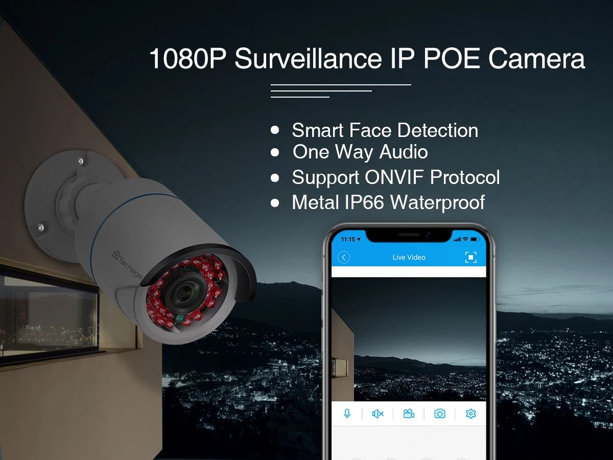 Techage 1080P POE камера безопасности H.265 CCTV Водонепроницаемая 2MP наружная ip-камера P2P Onvif видео сетевая камера IR-CUT