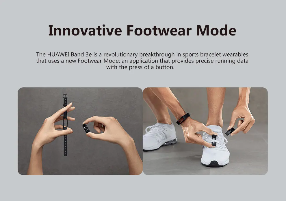 HUAWEI Band 3e-революционный прорыв в использовании спортивного браслета, который использует новый режим обуви; Приложение, которое обеспечивает точную информацию о беге с помощью кнопки.