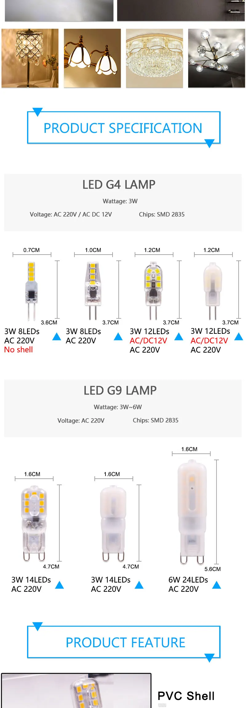10 шт. светодиодный светильник 3 Вт 5 Вт G4 G9 Лампа AC 220 В DC 12 В светодиодный светильник SMD2835 Точечный светильник люстра светильник Замена 20 Вт 30 Вт галогенная лампа