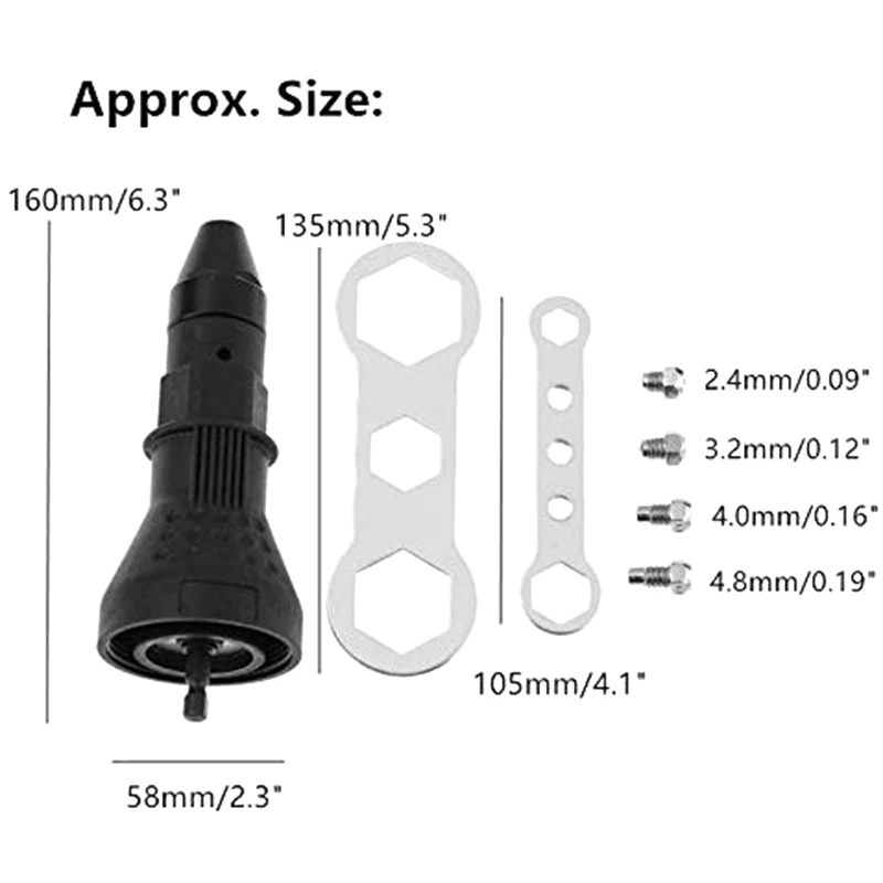 Легко установить и открыть-легко установить адаптеры питания с заклепками на беспроводные или ровные дрели. 2 шт гаечный ключ может легко открыть головку, когда застревает.