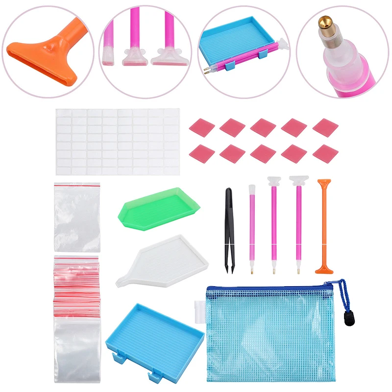Все наши инструменты для вышивки картин со стразами могут быть упакованы в мешок для инструментов на молнии.