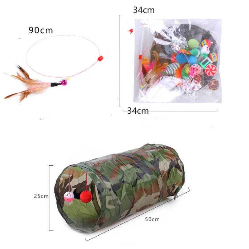 21 шт. набор игрушек для кошек, складной туннель для кошек, забавная игра, палка для кошек, колокольчик, перо, игрушка, ассорти, интерактивные игрушки для кошек, котят