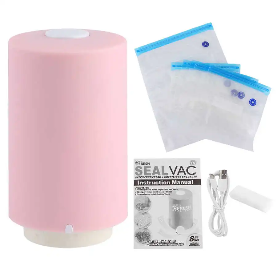 1 x Электрический вакуумный упаковщик1 х руководство на английском языке1 х USB кабель1 x зажим5 х компрессионная сумка (4 шт 21x22 см сумка, 1 шт 26x33,5 см сумка)Примечание: