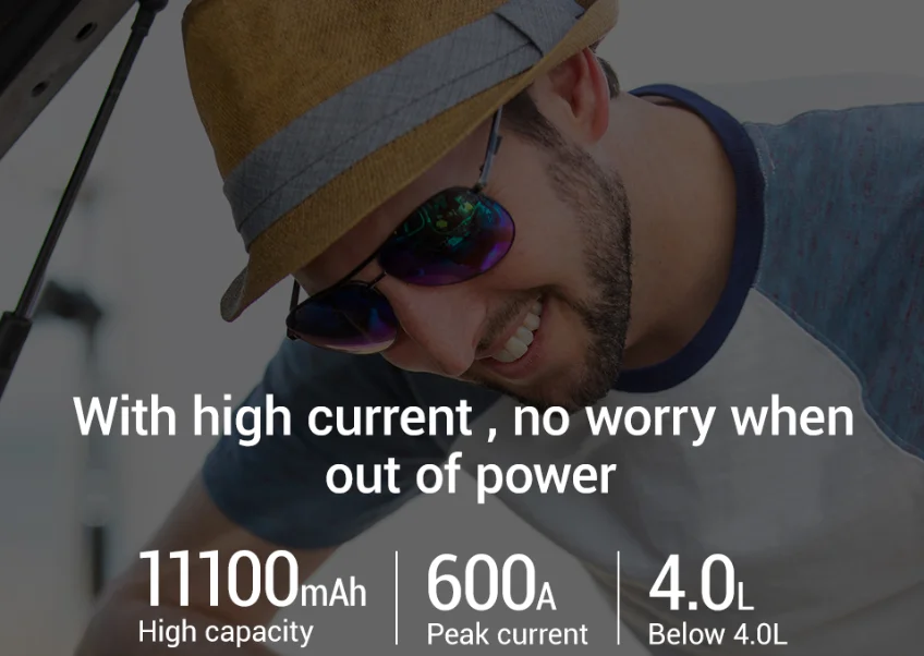 Характеристика и спецификация 1. Многофункциональный Внешний аккумулятор: -Наш стартер очень умный и многофункциональный, встроенный usb-порт для зарядки 5 В/2,4 А и светодиодный фонарик. Usb-порт для зарядки -Может использоваться для зарядки мобильный телефон, планшет, камера и так далее, это очень необходимо, когда ваше электронное оборудование мертво. Ли -Вам нужен светильник для замены шины, осмотра двигателя или предупреждения встречного движения о том, что вы сломаетесь на обочине дороги, ультра-яркий осветительный светильник покрывает вас, И он состоит из трех светильник ing режимы: светильник ing, SOS, флэш-памяти. 2. Встроенный светодиодный индикатор заряда батареи светильник, Водонепроницаемый и огнеупорные дизайн: 4 небольших светодиодный индикатор заряда батареи светильник s показать оставшийся уровень заряда, гладкая поверхность, не оставляя следов от пальцев, пожаротушение, устойчив к атмосферным воздействиям и Водонепроницаемый материал, дизайн, 3. Защита от температуры и умные зажимы: -Конструкция защиты от перегрева обеспечивает полную защиту для обеспечения безопасности использования. -Восемь защитных смарт-зажимов: защита от короткого замыкания, защита от перенапряжения, защита от перегрузки по току, защита от перезарядки, -Высокотемпературная защита, защита от обратного подключения, защита от перегрузки, защита от обратного наполнения.