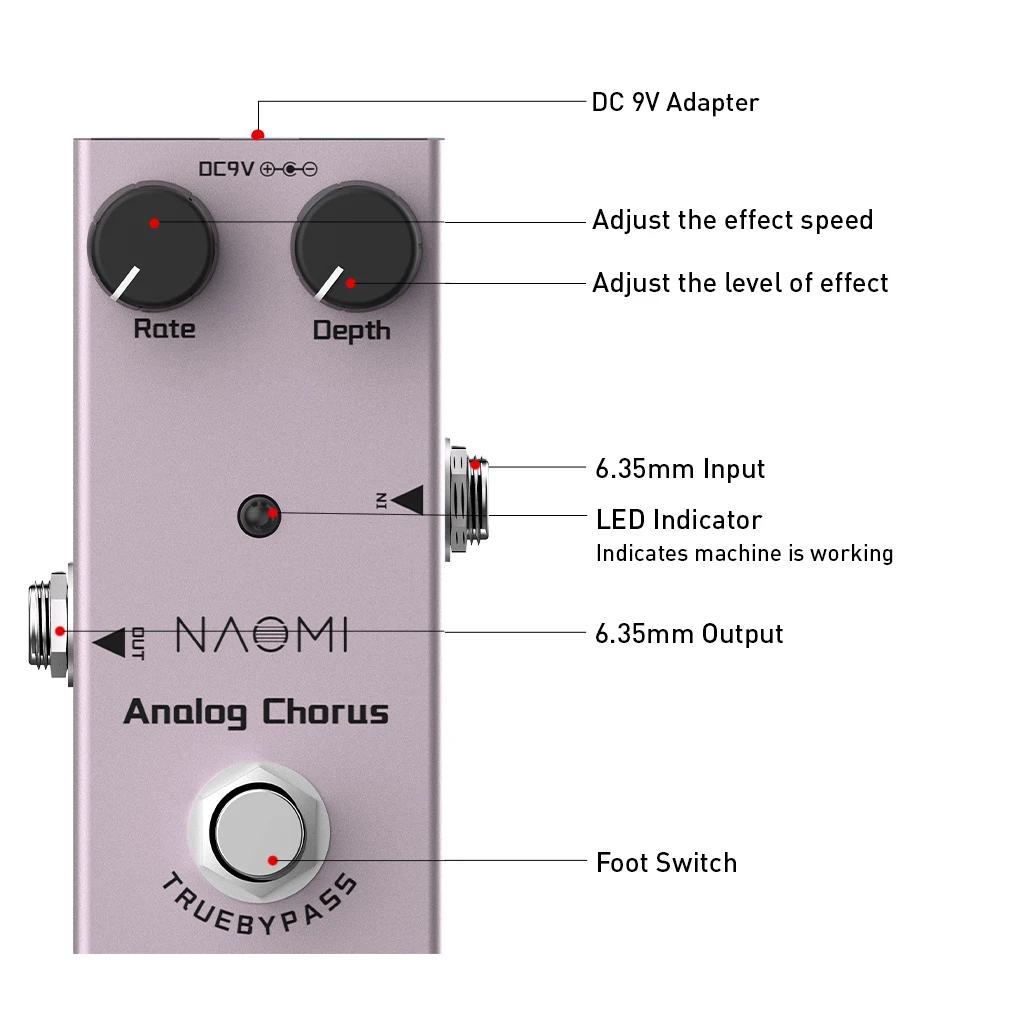 Аналоговый Хор, создайте некоторые свежие и обширные хор эффекты с этой аналоговая педаль эффекта. Использует классический чип BBD, чтобы получить тон хора. Скорость и регуляторы глубины позволяют формировать звук.