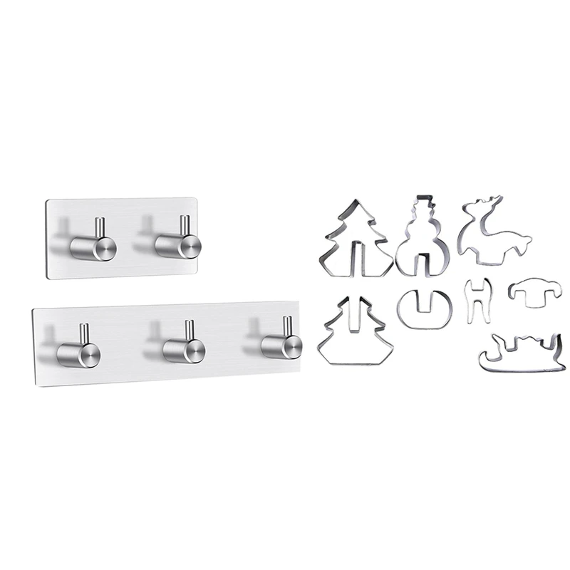2 шт. банные крючки для халатов из нержавеющей стали, крючки для кожуры, вешалка 3 + 2 крючка) и 8 шт. 3D Рождественский набор резаков для печенья