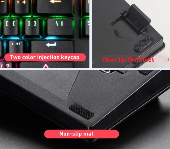 1. Полные ключевые макроопределения, ARM процессор, более быстрое выполнение и более высокая эффективность 2. Профессиональный игровой чип, высокая эффективность 3. Двойная крышка для инъекций, не может позволить себе слово 4. Полная Отличная комбинация клавиш FN, чтобы дать соответствующие ключевые функции 5,5000 миллионов раз Ключевая жизнь, прочный 6. Поддержка мультимедийной функции, более удобная и быстрая работа. 7. Эргономичный, удобный на ощупь 8. Новый Усовершенствованный пылезащитный прозрачный корпус вала.
