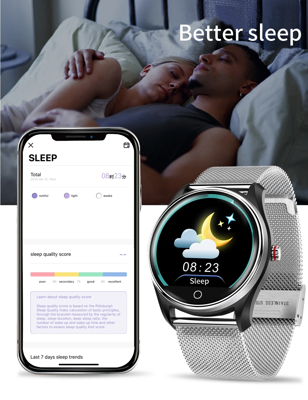 Автоматический мониторинг сна проверяет качество сна. Отдых хорошо, отдых легко. Измерьте длину и качество вашего сна. Получите планы действий из нашего приложения для улучшения качества сна. Основываясь на данных о вашем глубоком и светильник