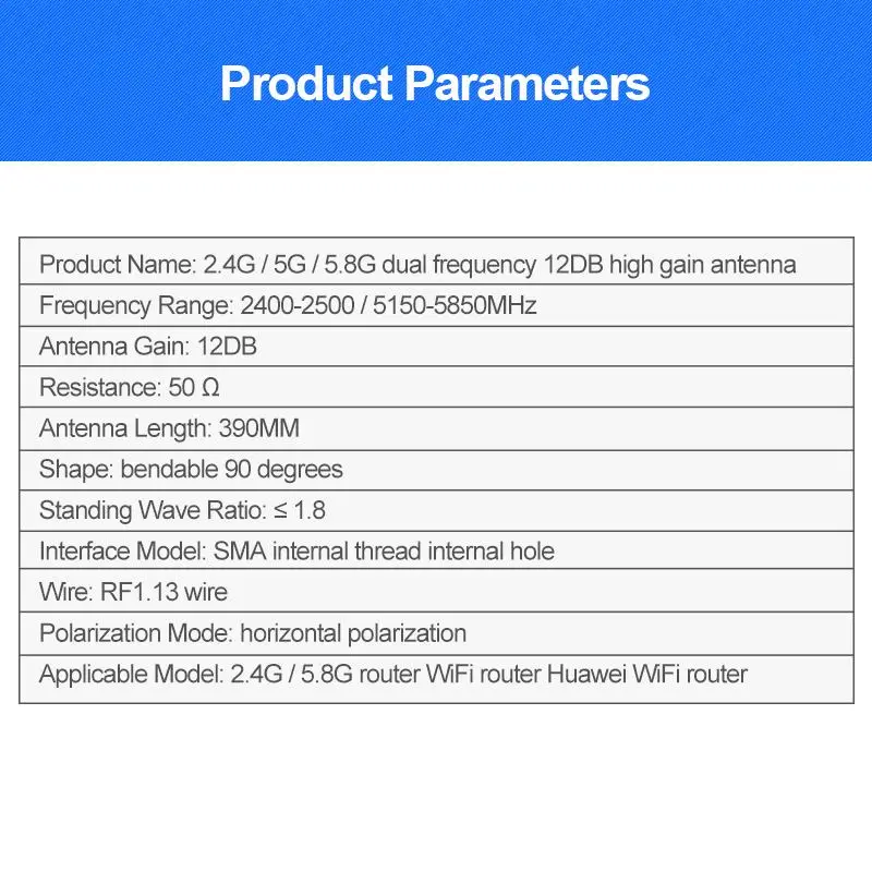 Название продукта: 2,4G / 5G/5,8G Двухчастотная 12DB антенна с высоким коэффициентом усиления