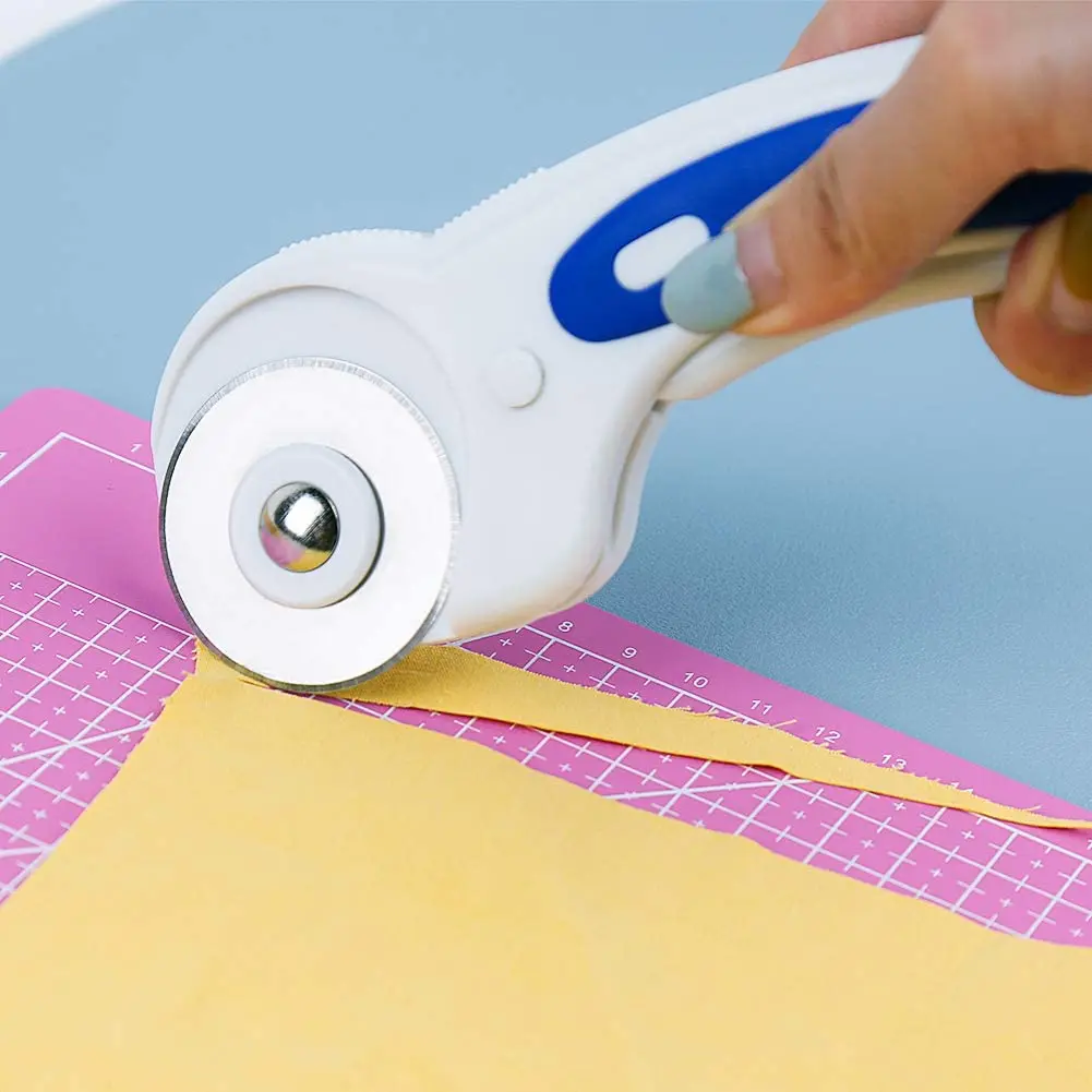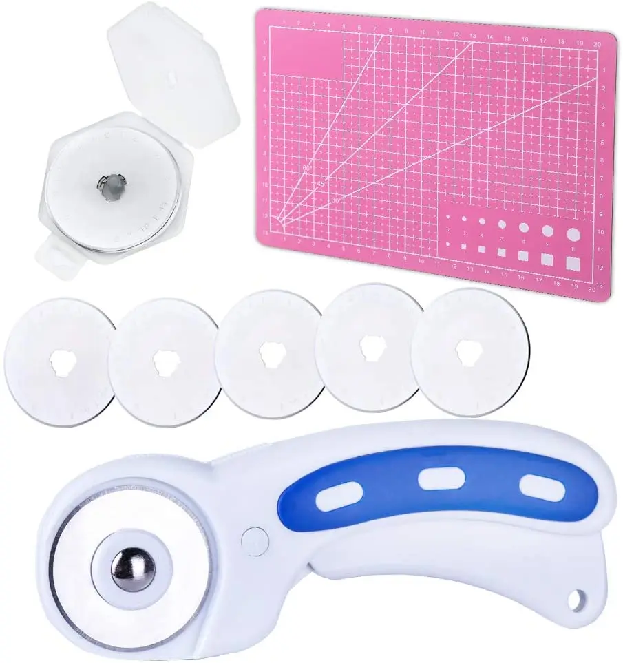 1. Роторный резак имеет лезвие прокатки 45 мм, которое режет несколько слоев и держит ткань плоской для точного, прямого кроя без зубчатых краев. 2. Роторный резак с защитным замком может легко резать круглые и сложные формы, помогая вам легко резать кожу, бумагу, ткань, пластик, это незаменимый инструмент для вашего проекта. 3. Набор для резки ткани позволяет новичкам или опытным любителям шитья и квилтинга начать с правой ноги с тремя основными инструментами, которые делают измерительную и режущую ткань легкой и безошибочной.