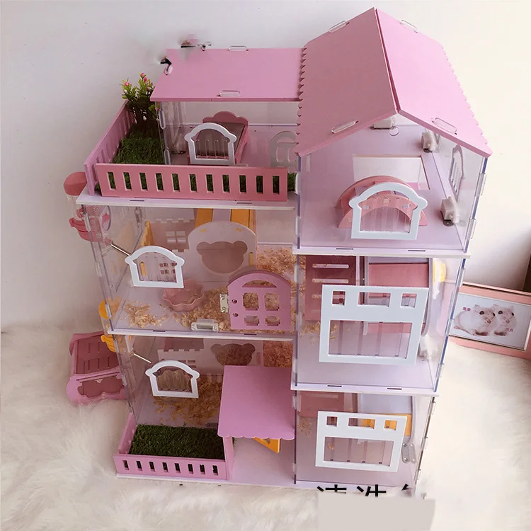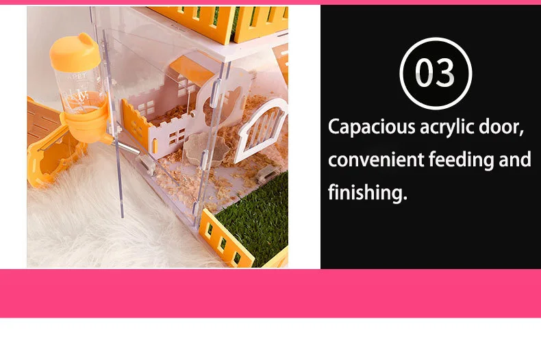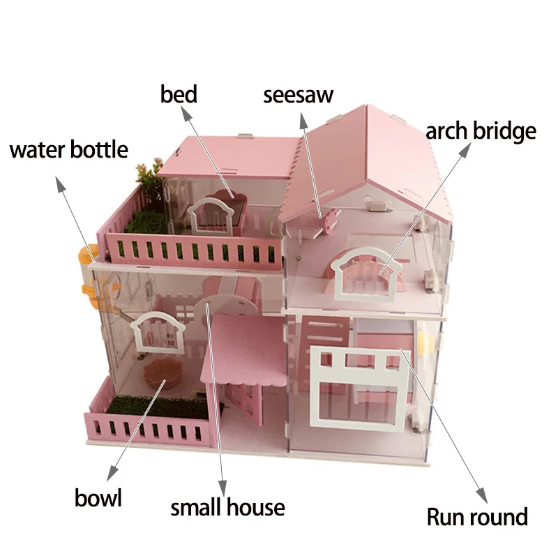 Продукт: новая акриловая Клетка для хомяков с одной кнопкой Особенности: 1. Мульти-угол прозрачный 2. Две двери, легко подтягивают домашних животных и кормят и регулируют расположение предметов на вилле 3. Можно добавить пол без ограничений Посылка: Вилла клетка * 1, чистящая запасная клетка (бесплатно) * 1, кровать * 1, бутылка для воды * 1, ходовое колесо * 1, чаша * 1, арочный мост * 1. Примечание: 1. Возможны отклонения на 1-2 см в измерениях вручную. 2. Из-за разницы при съемке светильник и дисплей, возможны незначительные отклонения в размерах в небольшая разница в цвете между реальным товаром и его фотографией.
