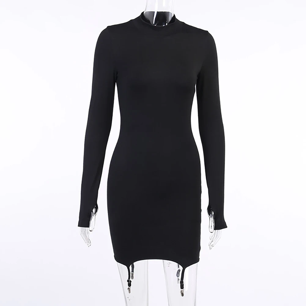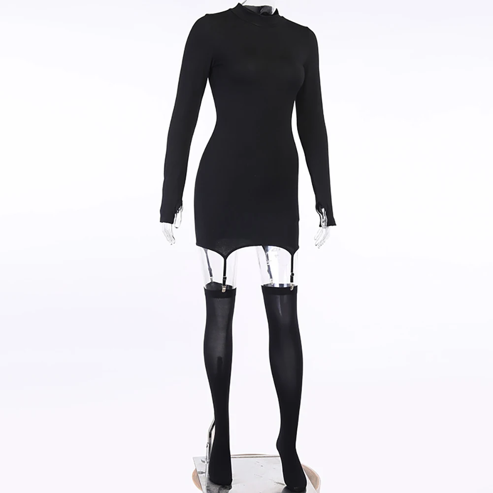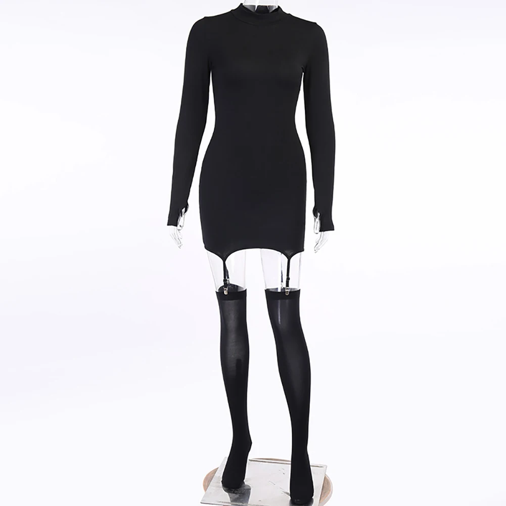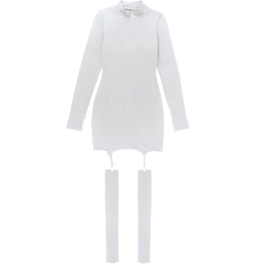 Сексуальное женское облегающее мини-платье с длинными рукавами и пряжкой на подтяжках с чулками