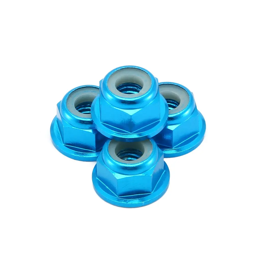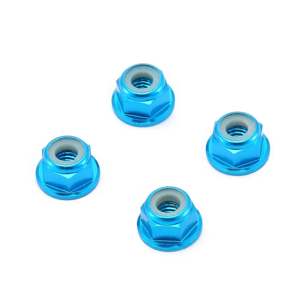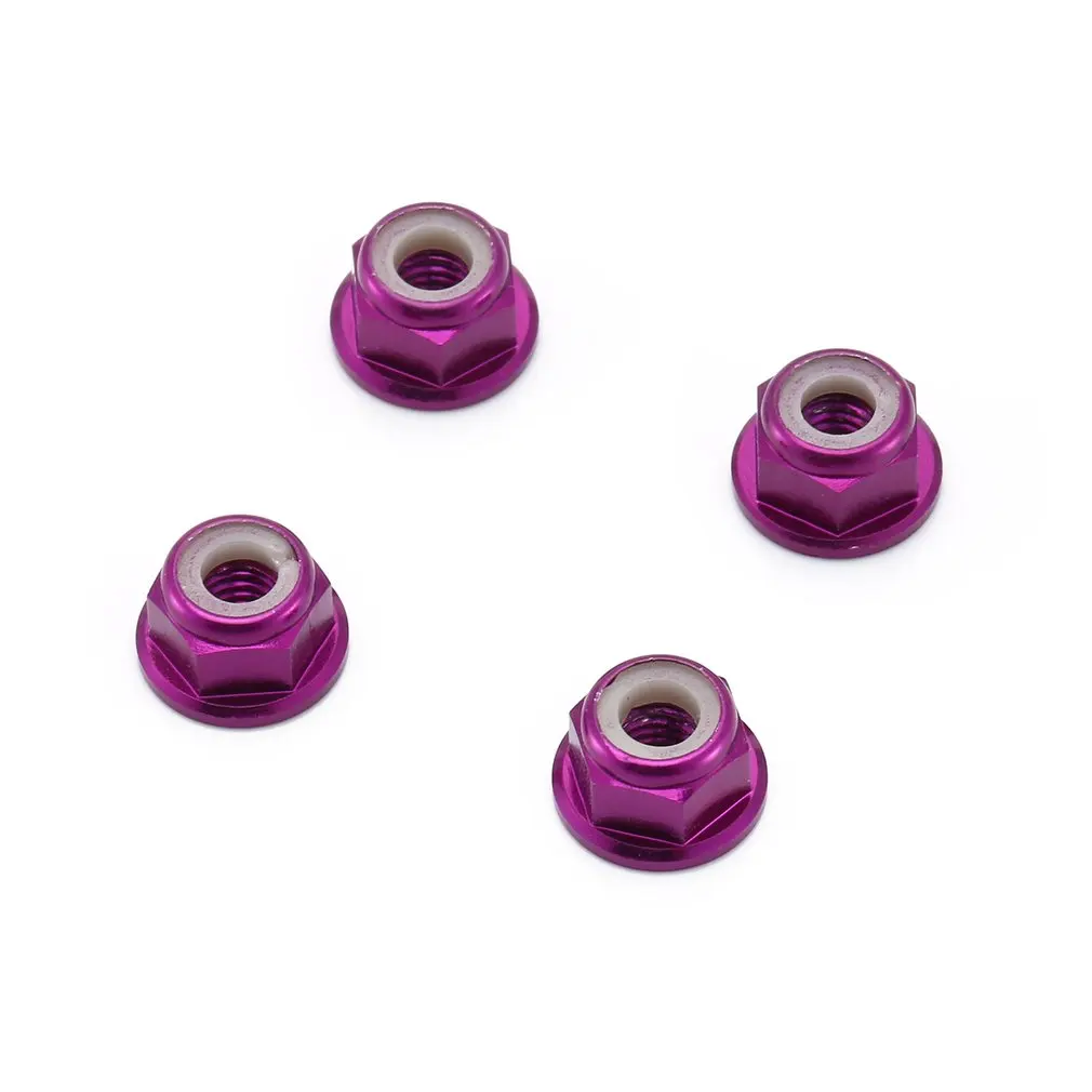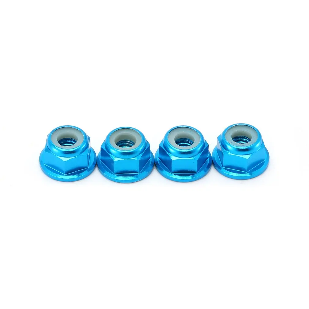 2,4 шт. гайки для блокировки колес, фланцевые нейлоновые самозатягивающиеся, база зубчатая. Диаметр отверстия 4 мм, высота 5,5 мм.