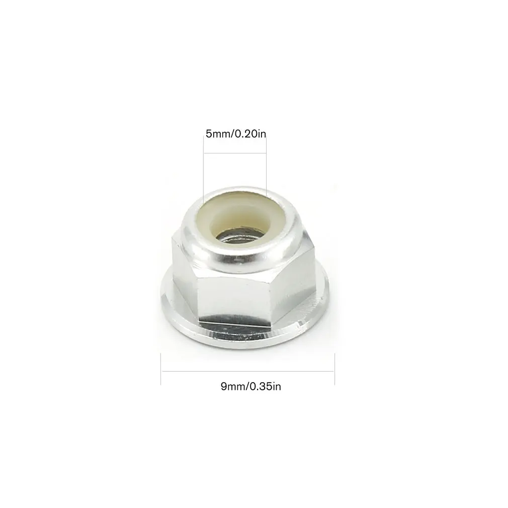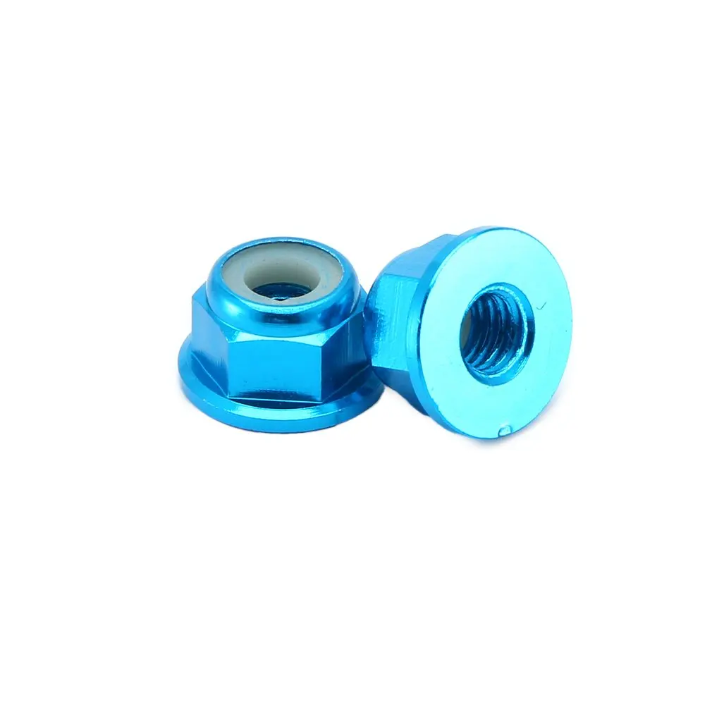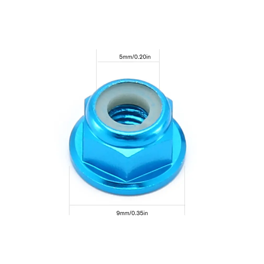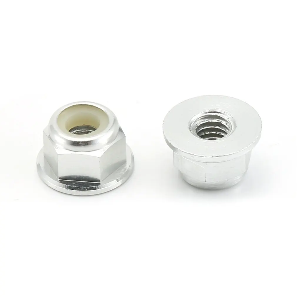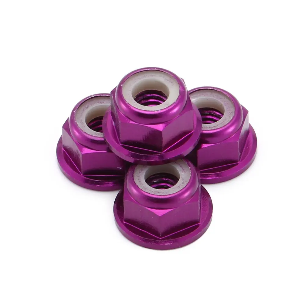 2,4 шт. гайки для блокировки колес, фланцевые нейлоновые самозатягивающиеся, база зубчатая. Диаметр отверстия 4 мм, высота 5,5 мм.