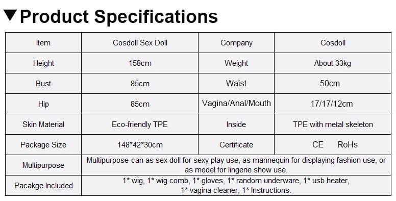 1. У нас есть много типов париков на ваш выбор, пожалуйста, оставьте сообщение в заказе, который вы предпочитаете, или свяжитесь со службой поддержки клиентов. Если вы не оставите сообщение, мы отправим его случайным образом. 2. Функция подогрева секс-кукол для взрослых: Да, дополнительная плата за $80, чтобы настроить, высота 130 см может иметь полный нагрев тела Взрослые секс куклы стоя Функция: Да, дополнительная плата за $50, чтобы настроить Секс-куклы для взрослых функция голоса: Да, дополнительная плата за $50 на заказ Секс куклы для взрослых функция трансплантации волос: Да, дополнительная плата за $100 на заказ, только силиконовая головка может трансплантировать волосы 3. Новый скелет требует дополнительной оплаты $60, пожалуйста, свяжитесь со службой поддержки клиентов. Обратите внимание, что функция нагрева не может быть настроена для нового скелета