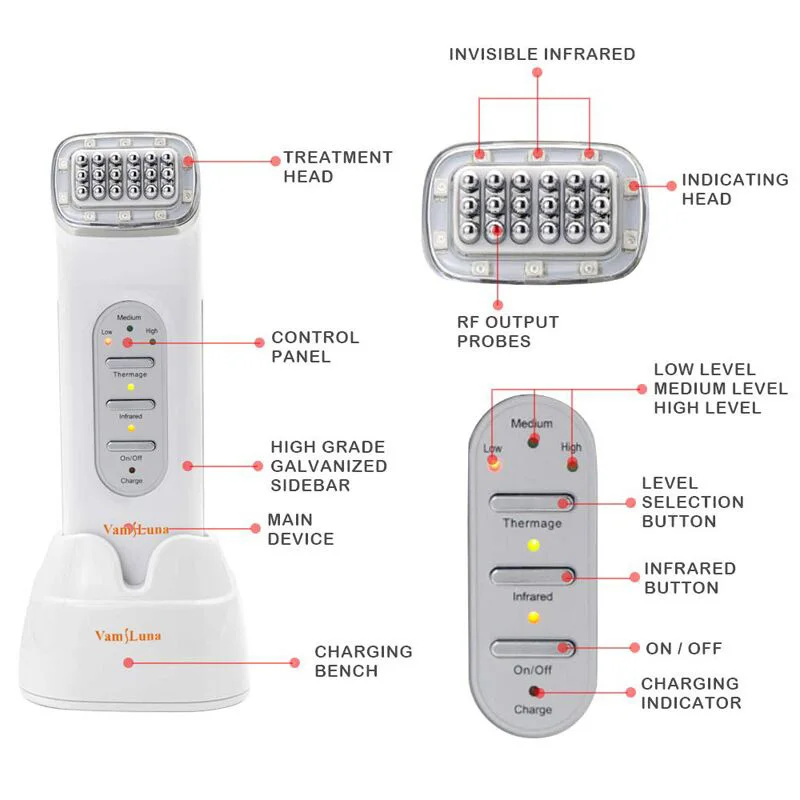 RF как инновационная и Неинвазивная радиочастотная терапия. Он принимает емкостной Соединительный электрод для передачи энергии и генерирует электрическое поле через поверхность кожи в подкожную клеточку .. При работе 1 МГц высокочастотного и решетчатого электрода, Электрический поданный менял 86,4 миллионов раз в секунду, чтобы ответить на быстрое изменение машины, И кожа заряженных частиц на той же частоте меняет свое направление. В это время естественное сопротивление подкожной клетчатки будет генерировать тепло. Когда температура достигает 45-60 градусов, коллаген в дерме будет сокращаться немедленно, что делает свободную кожу подтягивающейся и плотной после лечения. Генерируя устойчивый поток коллагена, он увеличит толщину и плотность дермы и поможет наполнять морщины, устранить шрамы, восстановить эластичность кожи и блеск, сделать кожу белой и нежной.