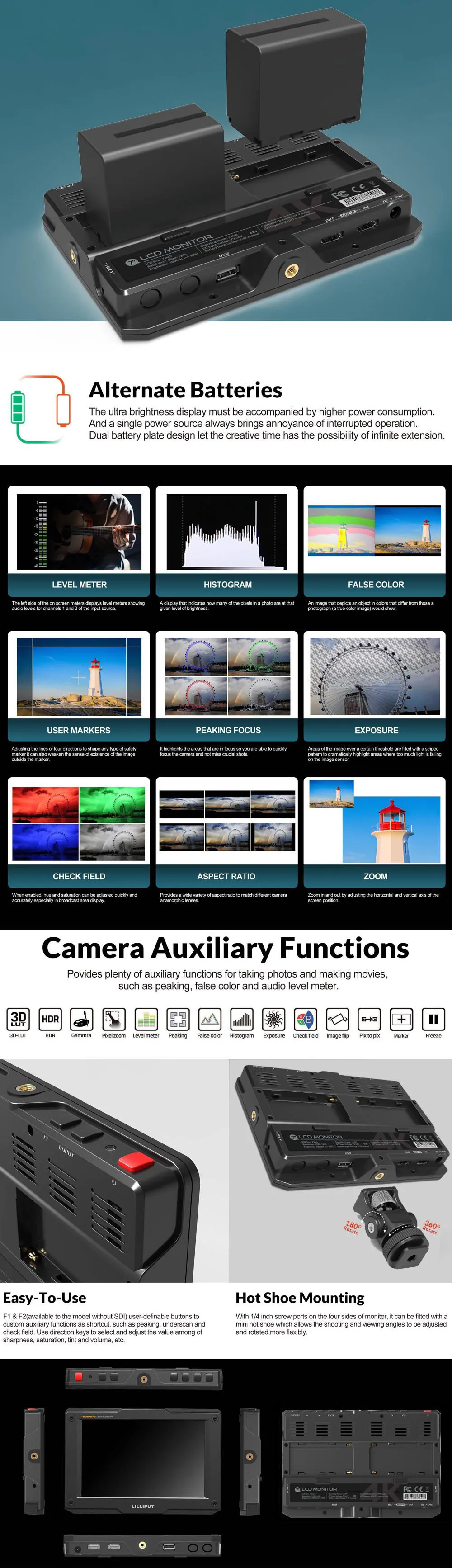 Обеспечивая превосходное качество изображения, а также различные профессиональные вспомогательные функции, включая 3D-Lut,