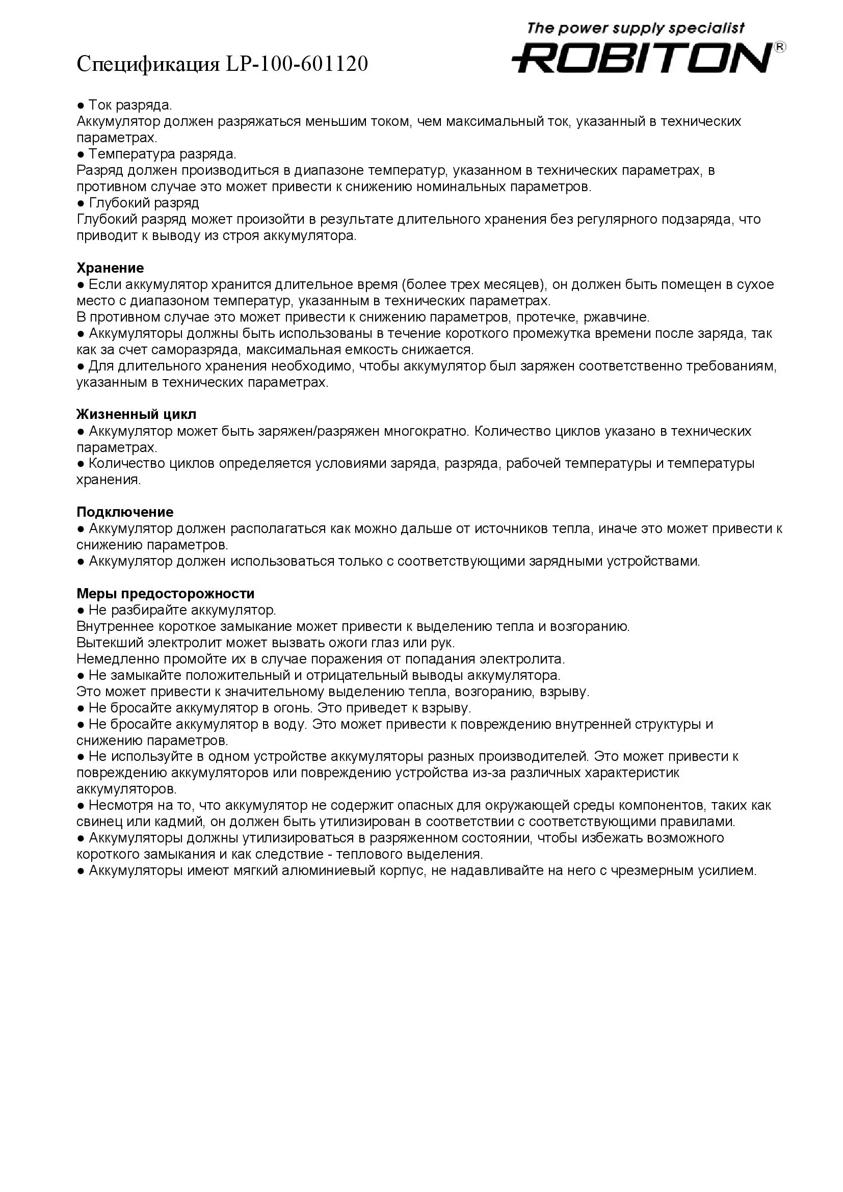Спецификация:LP 601120 100мАч Пром.упаковка