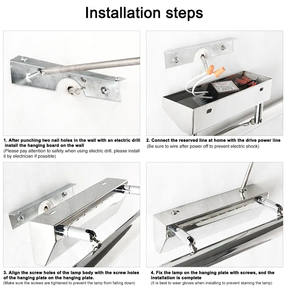 Изготовлен из высококачественной нержавеющей стали, тонкая полировка обеспечивает гладкую и яркую поверхность, это элегантный и современный зеркальный светильник для вас.