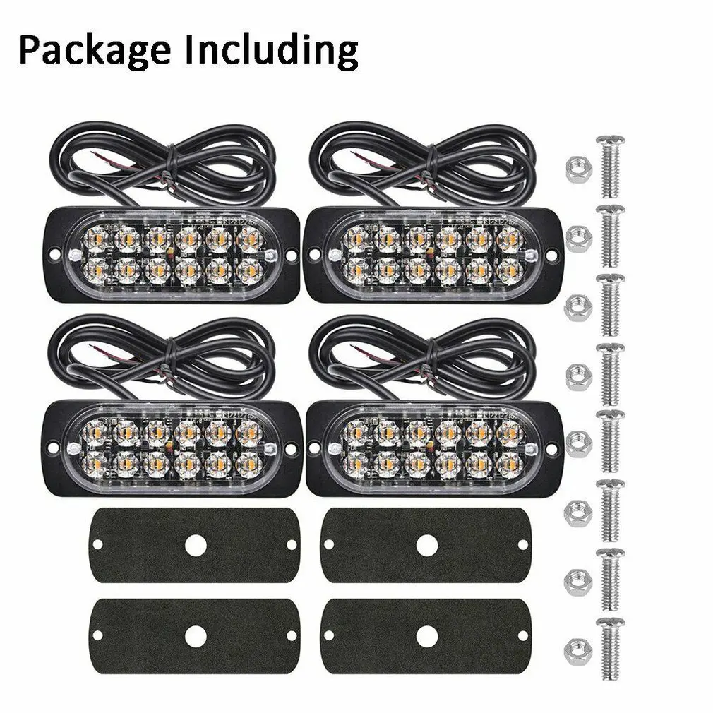 Тип: 4x Янтарный 12 светодиодный стробоскоп аварийный Предупреждение светильник бар