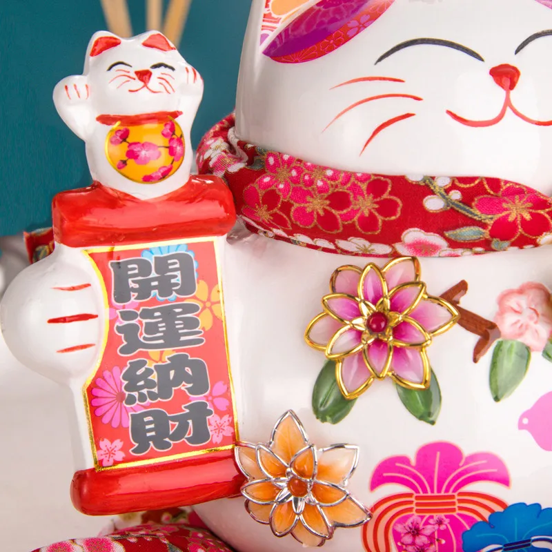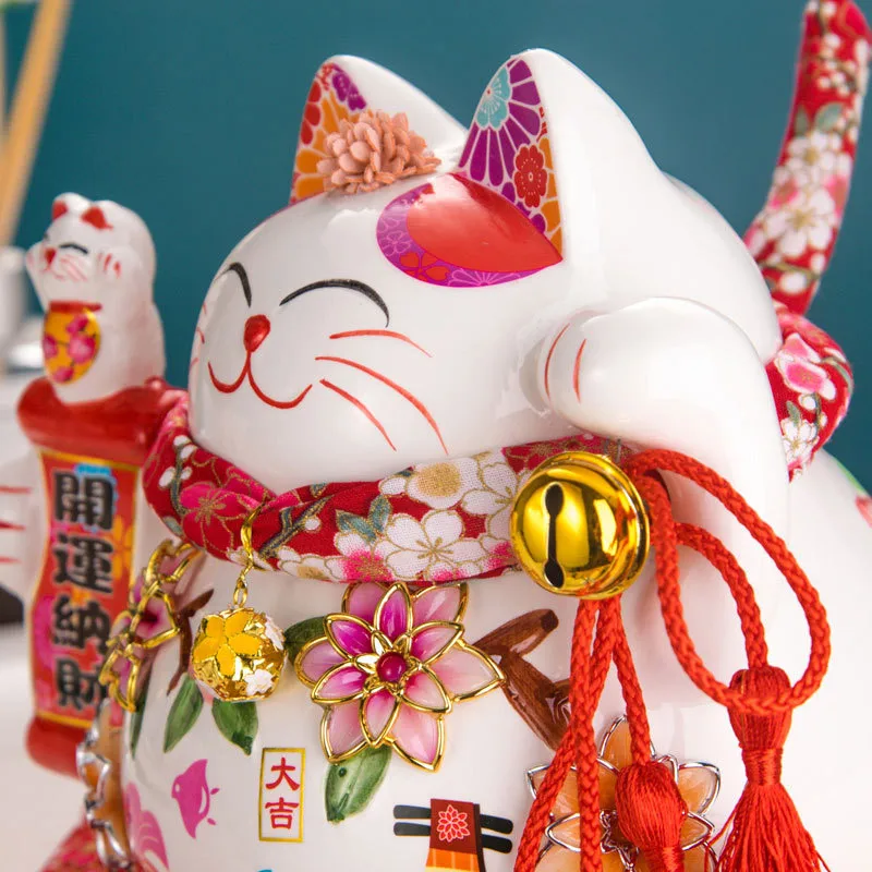 Символ процветания на удачу-Скульптуры изображают кошку с вертикальной лапой и обычно отображаются (много раз на входе) в магазинах, ресторанах, Пачинко салонах и других предприятиях.