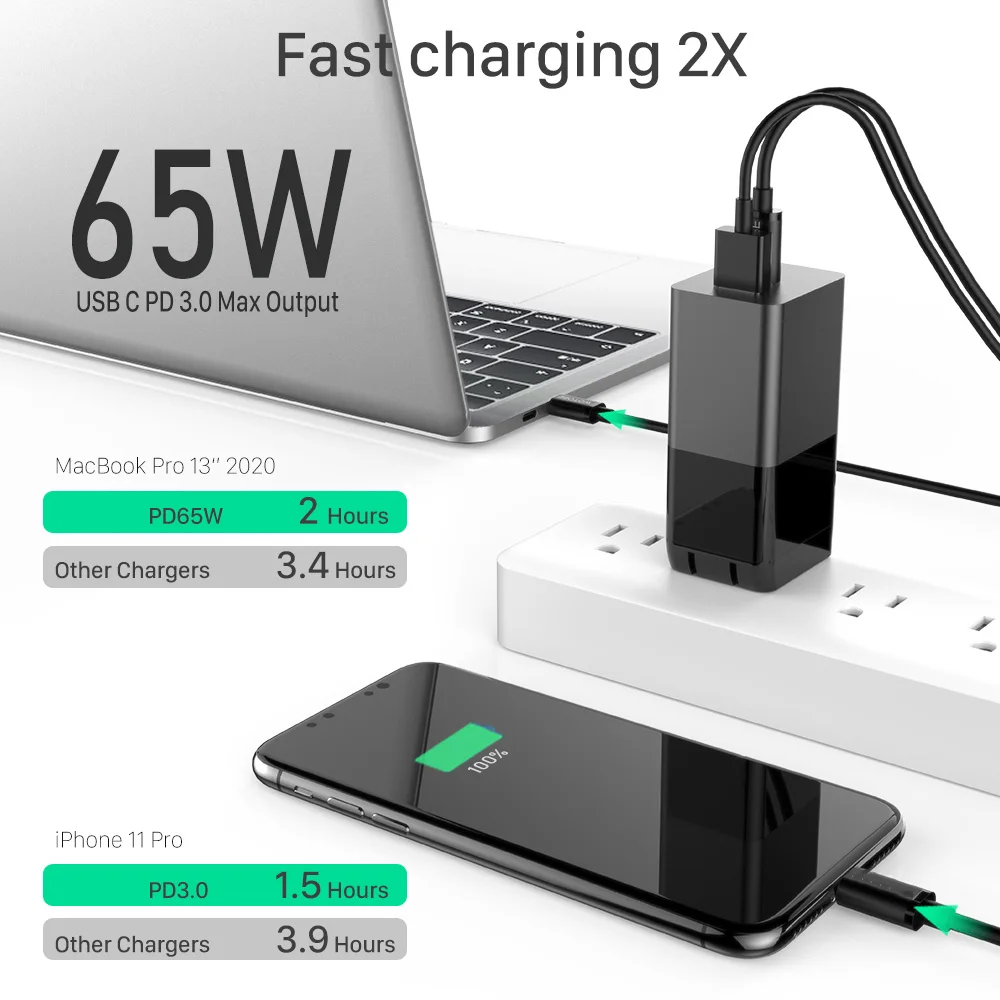 Меньший размер 50% меньше, чем обычное PD65W зарядное устройство, больше экономии пространства