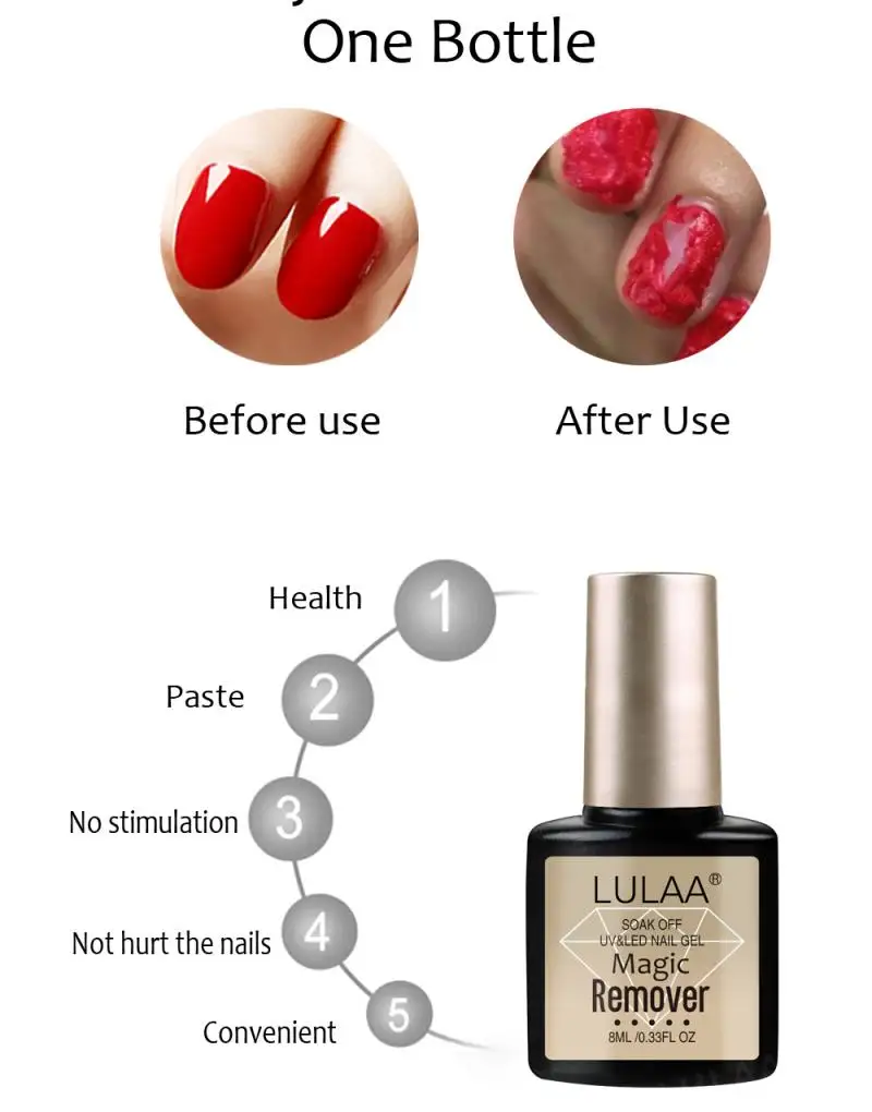 Эффективность: Замените средство для удаления ногтей, Нанесите средство для удаления ногтей примерно за 1-2 минуты