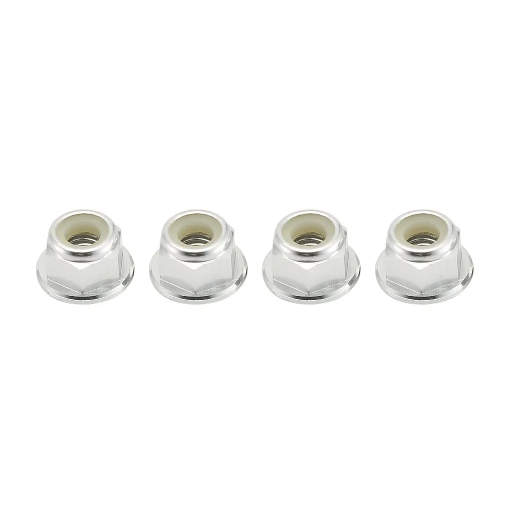 2.4шт гайки для блокировки колес, фланцевые нейлоновые самозатягивающиеся, базовые зубчатые. Диаметр отверстия 4 мм, высота 5,5 мм.