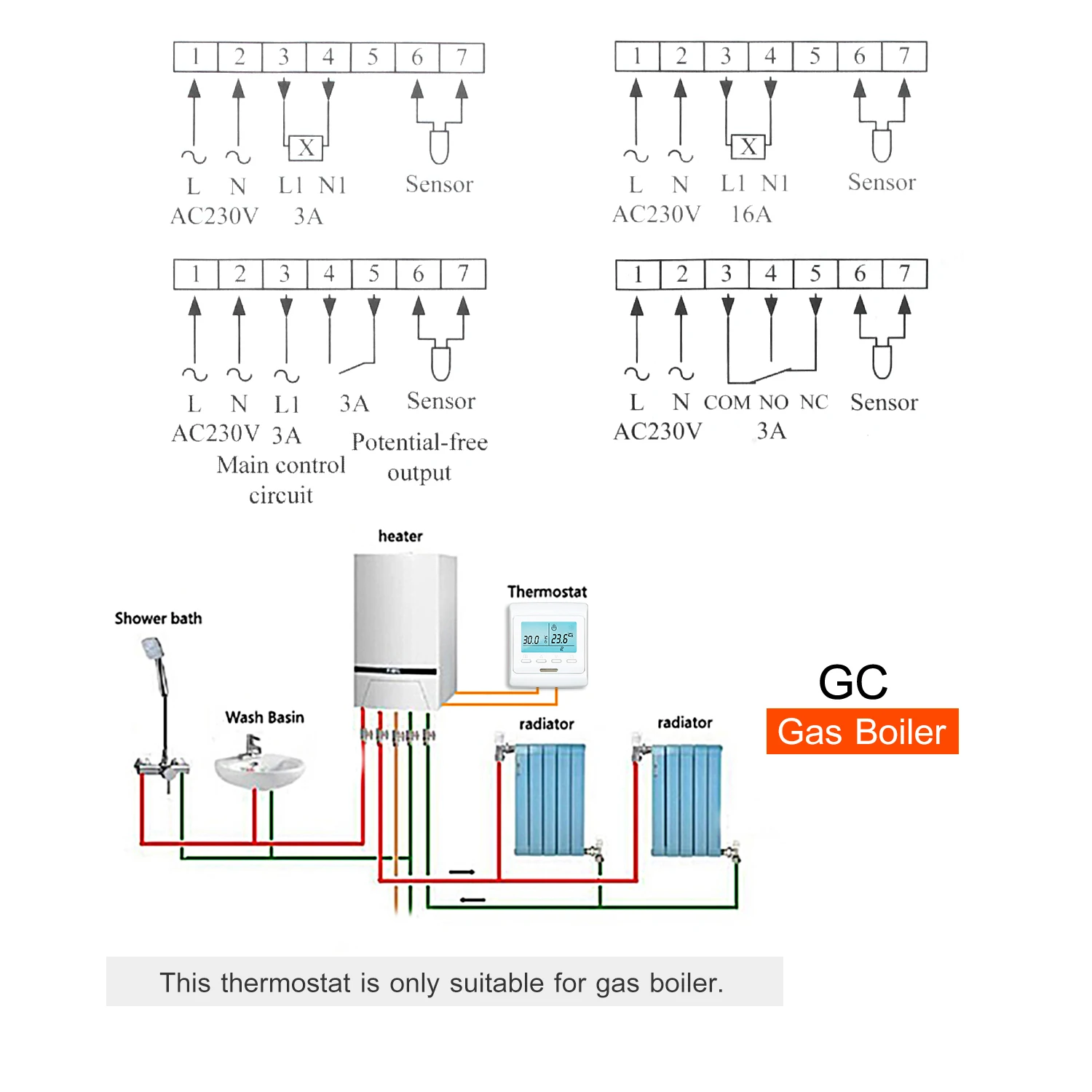 Применение: термостат с электрическим подогревом (ГБ)/термостат с водяным подогревом (GA)/термостат с газовым котлом (GC) (опционально)