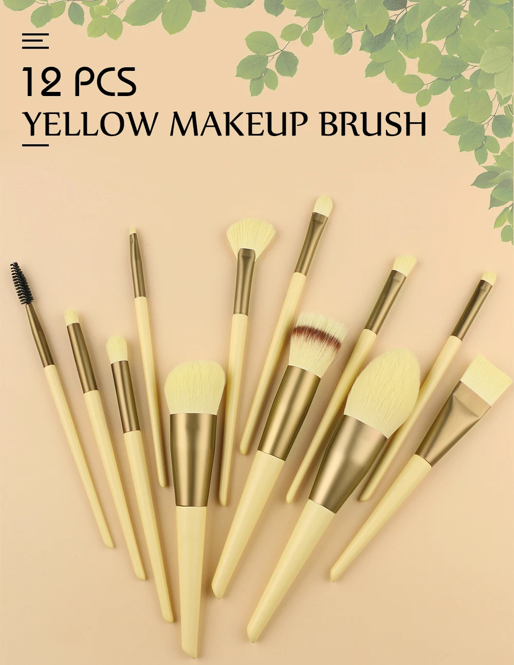 12 шт. желтый набор кистей для макияжа