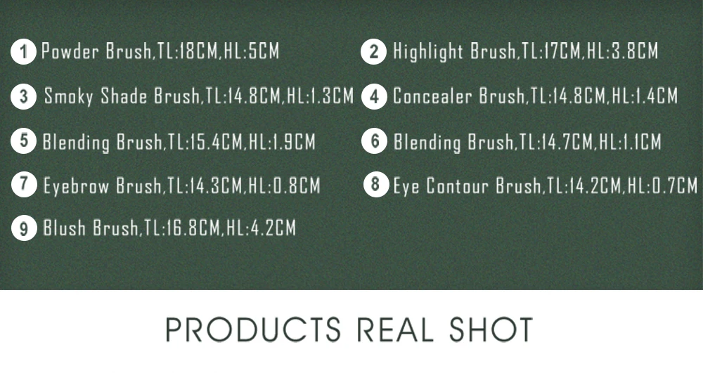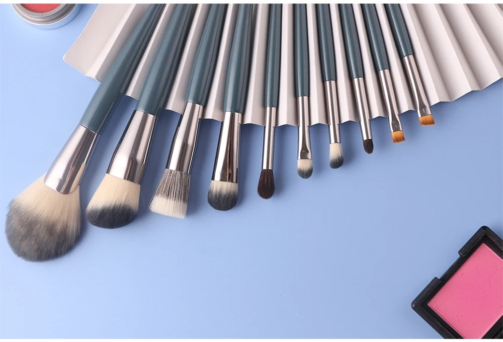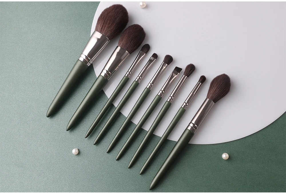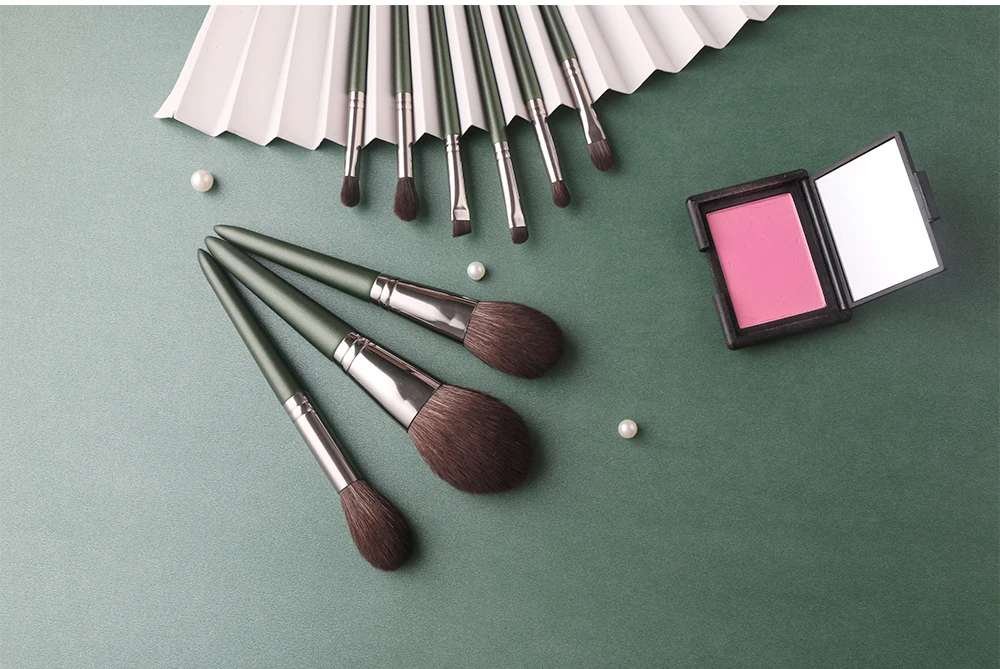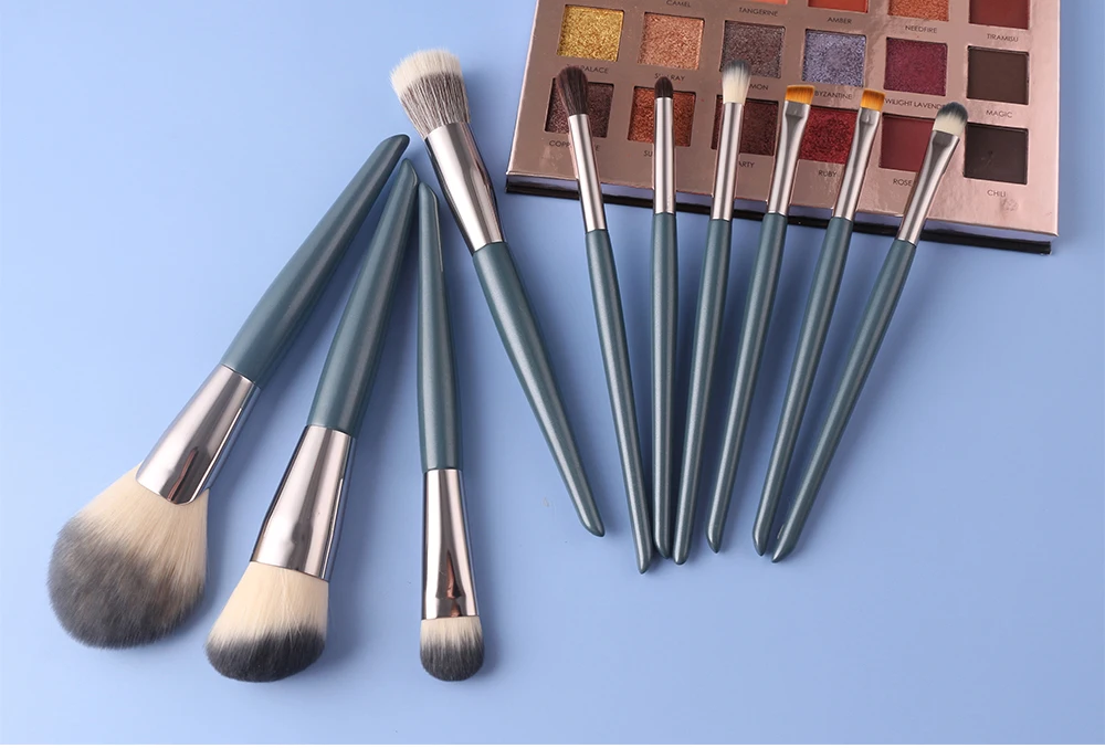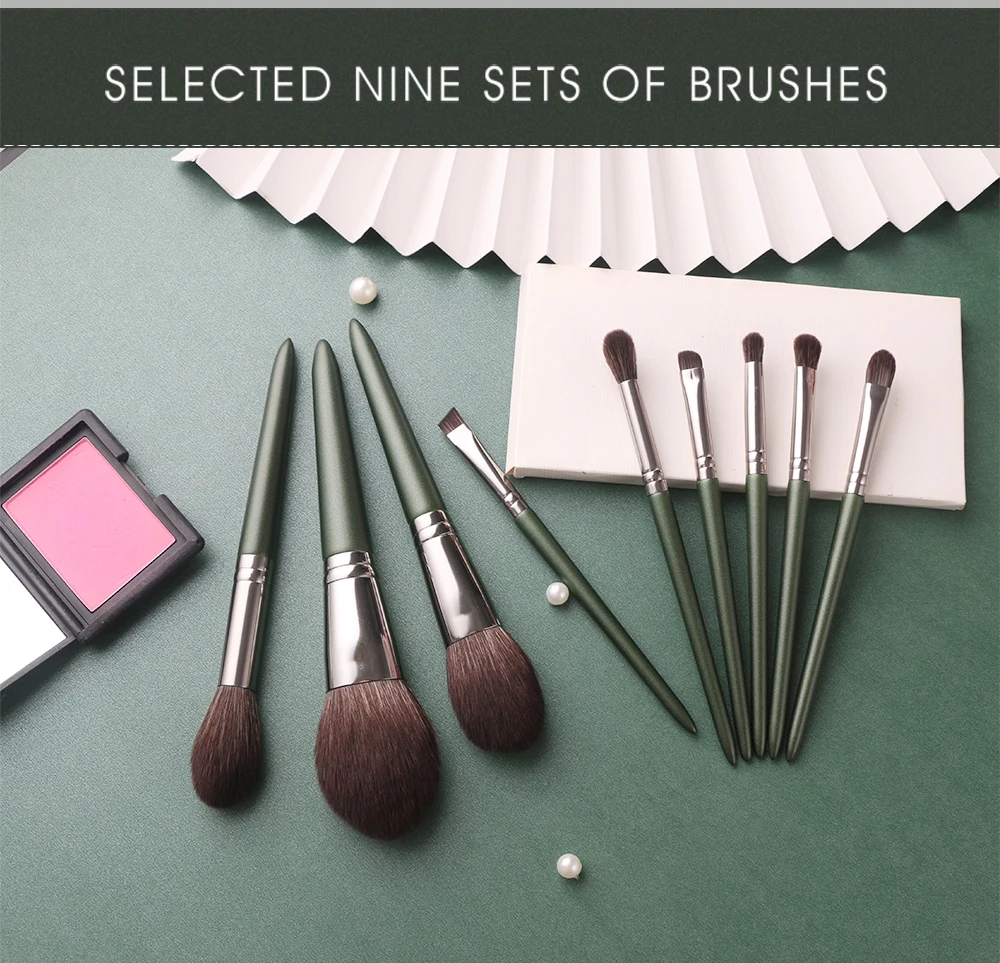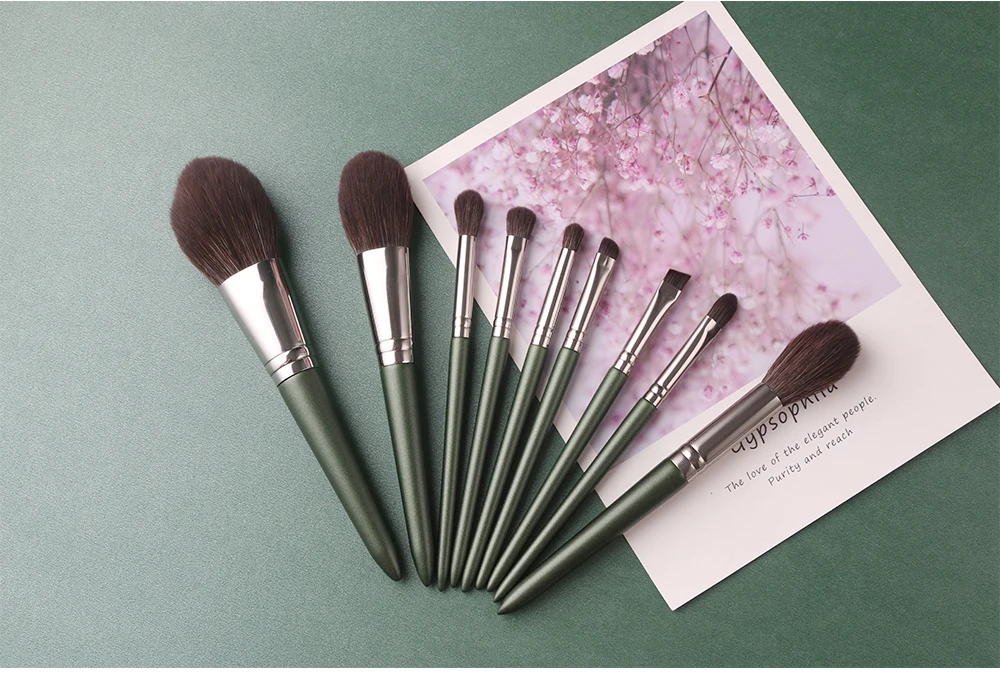 Набор из 9 зеленых кистей для макияжа
