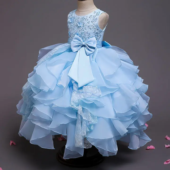 Кружевное платье принцессы с лепестками для девочек; Элегантные вечерние платья для дня рождения и свадьбы; Серое платье с цветочным рисунком для девочек; Рождественская одежда для детей