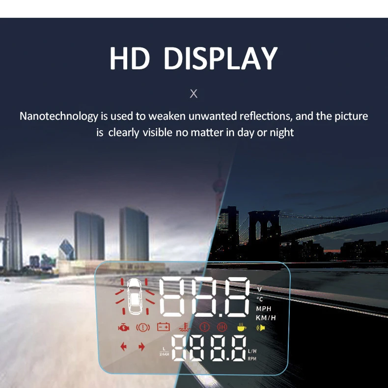 1. Получайте данные о вождении, не заглядывая вниз, избегайте дорожных происшествий, вызванных смотреть вниз на приборную панель. 2. Эффективно уменьшает усталость вождения, вызванную переключением глаз назад и вперед между приборной панелью и передней частью, и повышает безопасность вождения. 3. Есть функции сигнализации, такие как напоминание о превышении скорости, которое может напомнить вам о проблемах в автомобиле и избежать несчастных случаев.