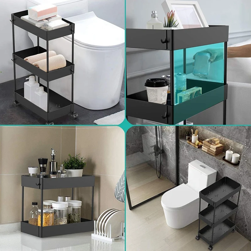 [Многофункциональная тонкая корзина для хранения] -- тележка для хранения, предназначенная для экономии пространства и легкой транспортировки. Черная тележка для хранения стильная, простая и красивая, подходит для вашей ванной комнаты, кухни, спальни, прачечной, офиса или между стиральной машиной и сушилкой.