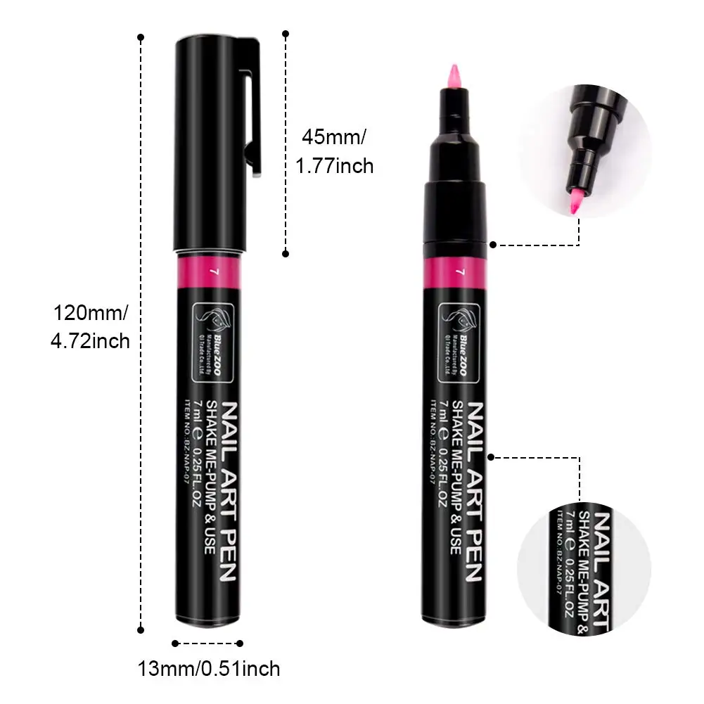 1. Легко нарисовать прямую линию и нарисовать любые маленькие формы на ваш дизайн ногтей на следующий уровень; 2. Различные цвета лака для ногтей для вашего художественного удовольствия; 3. Инструменты для художественного оформления своими руками; 4. Легко снимается и гладко рисуется без протекания; 5. Они могут удовлетворить потребности как умелых маникюрщиков, так и начинающих. 6. Не вредит вашим ногам и не имеет неприятного запаха. 7. Подходит для всех ногтей, ногтей и кончиков ногтей.