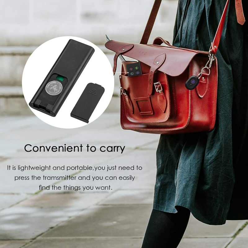 2 способа оповещения: Есть 2 способа помочь вам найти товары. Когда вы нажимаете кнопку, приемник будет гудеть и мигать красный светильник, чтобы легко найти элементы.